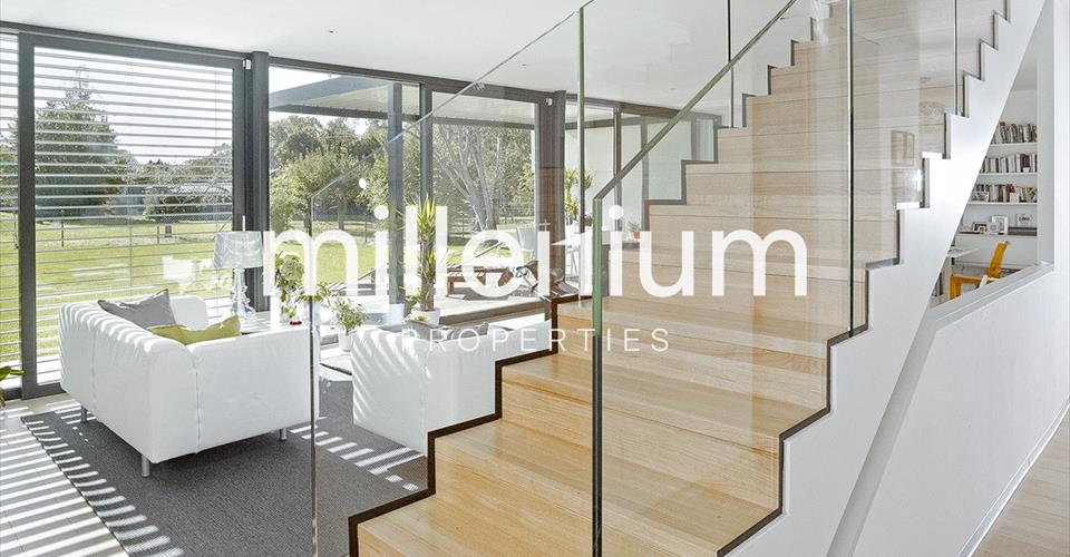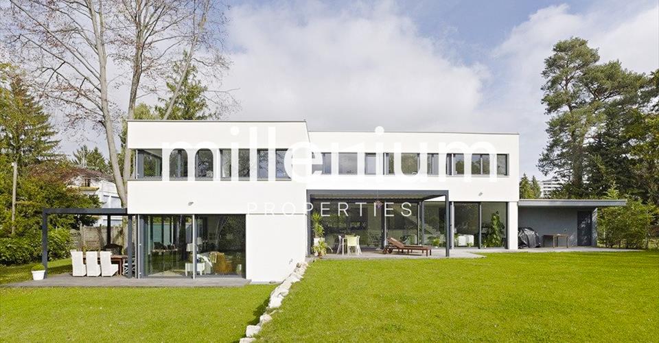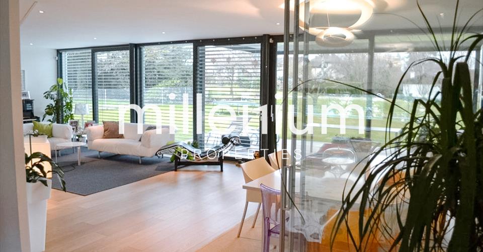Agence : Millenium Properties SA Réf : SH/KM 2247 Au cœur du Grand-Saconnex, à proximité immédiate de l’ONU, cette superbe maison contemporaine offre un cadre de vie exceptionnel. Érigée sur une parcelle verdoyante de plus de 600 m², elle bénéficie d’une surface habitable d’environ 240 m² pour une surface utile totale de 360 m², répartie sur trois niveaux soigneusement agencés. Rez-de-chaussée : Un hall d’entrée spacieux avec rangements intégrés et toilettes visiteurs Une cuisine équipée avec coin repas, ouverte sur le séjour par des panneaux vitrés Un vaste salon lumineux donnant accès à une terrasse d’environ 20 m² et au jardin arboré Un espace bureau avec armoires encastrées Un WC visiteurs Une terrasse équipée d’une pergola motorisée 1er étage : Quatre belles chambres, dont une suite parentale avec dressing, salle de douche et WC Une salle de bain avec WC Une seconde salle de douche avec WC Sous-sol entièrement aménagé et chauffé : Une buanderie Une pièce de rangement Une cave Une grande pièce polyvalente pouvant servir de salle TV, salle de jeux, salle de sport Une pièce polyvalente avec armoire Une salle de douche avec WC Prestations et équipements : Architecture contemporaine avec finitions haut de gamme et design italien Pompe à chaleur et chauffage au sol dans toute la maison Certification Minergie, panneaux solaires pour une consommation énergétique optimisée Porte blindée avec ouverture par empreinte digitale Accès sécurisé avec portail motorisé Extérieurs : Magnifique jardin paysager de 600 m² Terrasse avec pergola motorisée Garage double avec porte télécommandée Places de parking extérieures Loyer : CHF 8’900 Disponibilité 01.10.2025 Contact : Kari Marill-Hernandez MILLENIUM PROPERTIES Boulevard du théâtre 5, 1204 Genève https://www.milleniumproperties.ch