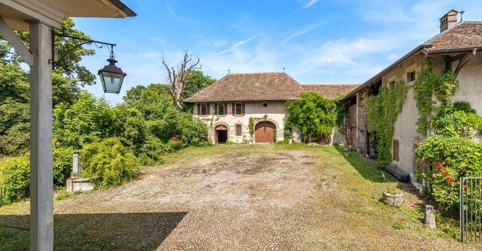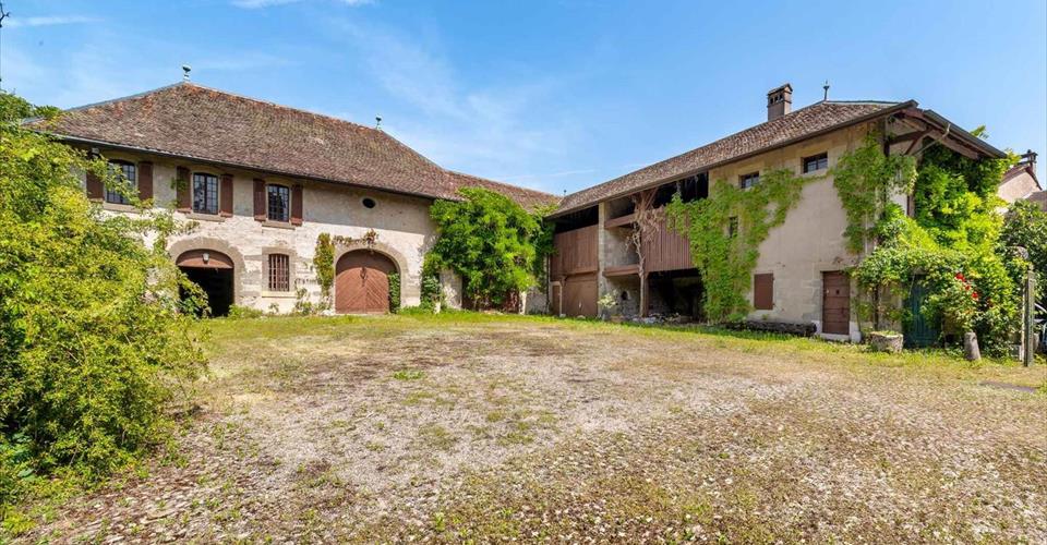 Au cœur du village d’Avully, ce corps de ferme avec grange forme un ensemble rural authentique à fort potentiel, entièrement à rénover. Implantés autour d’une grande cour pavée commune, ces bâtiments disposent de volumes généreux et conservent tout le charme de l’architecture traditionnelle genevoise. Le bien comprend un ancien pressoir, un logement de gardien, plusieurs salles de réception, des écuries ainsi que divers locaux techniques. Il dispose également de trois places de parking, dont deux couvertes et une fermée, un atout appréciable dans ce cadre villageois. Il se prête parfaitement à un projet de réhabilitation. Des travaux de mise au goût du jour, respectueux du cachet existant, permettront de valoriser pleinement les lieux, d’en améliorer le confort et de révéler tout leur caractère. Idéalement situé dans un environnement calme et villageois, ce corps de ferme représente une belle opportunité.
