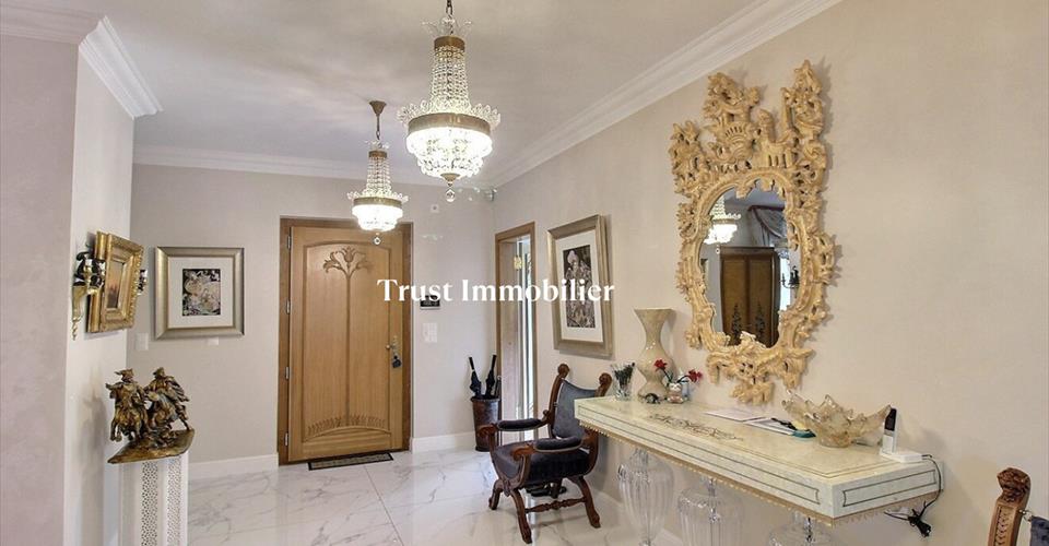 Conches : Villa moderne d’exception de 400 m2 habitable avec vue sur le Salève à vendre Trust Immobilier, agence immobilière à Genève, Canton Vaud et à Crans-Montana, vous propose Réf : 6033 – TGE.A Découvrez cette somptueuse villa moderne située dans un chemin privé de la très recherchée commune de Conches. Un lieu de vie exceptionnel offrant un confort absolu et des espaces conçus pour le bien-être. Cette propriété offre un panorama exceptionnel sur le Salève. Dès l’entrée, vous serez séduit par la distribution des pièces : un vaste hall avec vestiaire, une lumineuse pièce de vie avec cheminée et une élégante salle à manger donnant sur l’extérieur. La cuisine équipée s’ouvre sur un agréable patio utilisable en toute saison. L’étage est dédié au repos avec une spacieuse suite parentale (dressing, salle de bains, balcon avec vue Salève) et deux autres suites spacieuses avec leurs propres salles de bains. Les combles offrent un potentiel d’aménagement supplémentaire. Le niveau inférieur est un véritable atout avec une grande salle polyvalente ( salle cinéma, bibliothèque) , un espace dédié à la détente (spa, sauna, hammam, chambre de sel), deux caves à vin, une spacieuse chambre avec salle de bains et une buanderie. Les extérieurs invitent à la relaxation avec un pool house indépendant avec une chambre, dressing et cuisine et salle de bain, une piscine chauffée et un garage double. Une opportunité rare d’acquérir une propriété d’exception offrant un cadre de vie privilégié. www.trustimmobilier.ch