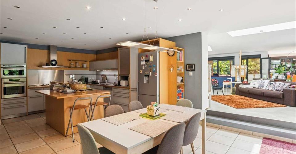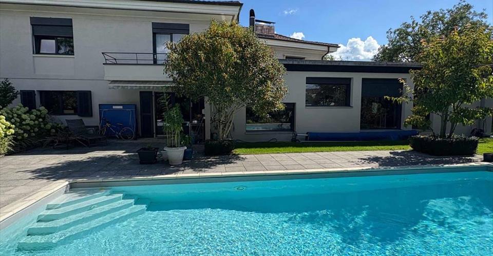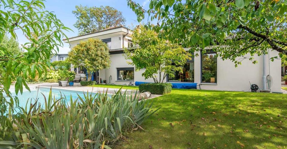 Située dans un environnement paisible, dans un chemin sans issue, cette maison s’élève au cœur d’une parcelle de 1’691 m2 magnifiquement arborée, agrémentée d’un jardin soigné et d’une belle piscine invitant à la détente. Edifiée dans les années 60 et enrichie d’une extension contemporaine en 2008, elle conjugue charme et fonctionnalité. Son grand nombre de chambres répondra aux besoins d’une famille, tandis que ses volumes lumineux offrent confort et convivialité. Un couvert permet d’abriter deux véhicules et complète harmonieusement l’ensemble.