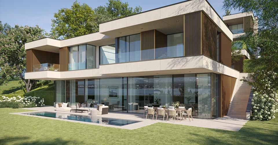Site du projet dédié : villas-panorama.ch Découvrez en exclusivité les Villas Panoramas, deux villas individuelles de prestige situées à Cologny, offrant une vue imprenable sur le Léman et le Jura. Nichées dans un quartier résidentiel prestigieux et paisible, ces villas allient élégance, confort et proximité du centre-ville de Genève. Chaque villa, offrant des parcelles allant de 940 m² à 1’115 m², propose des espaces généreux et lumineux, avec des surfaces SBP de 500 m² à 520 m² sur 3 niveaux. Elles disposent de 4 ou 5 chambres en suite, d’un ascenseur privé et d’une piscine intérieure et/ou extérieure. Les sous-sols, baignés de lumière naturelle grâce aux larges ouvertures et patios, offrent des espaces aménagés tels qu’une salle de sport, une salle de jeux, une cave à vin et un espace Sauna/Hammam. Dessinées et pensées par le cabinet de renom Ai4 Architectes, elles répondent aux plus hauts standards de performance énergétique (THPE). Équipées de panneaux solaires, d’une pompe à chaleur, d’un chauffage au sol et réalisées avec des matériaux durables, elles garantissent un confort optimal. Chaque villa bénéficie de 3 places de parking situées dans le garage souterrain sécurisé. Leur design unique, une localisation prestigieuse, des finitions très haut de gamme et des équipements luxueux font des Villas Panoramas une opportunité rare. Les prix de vente ont été validés par un établissement bancaire. Livraison : prévue pour fin 2026
