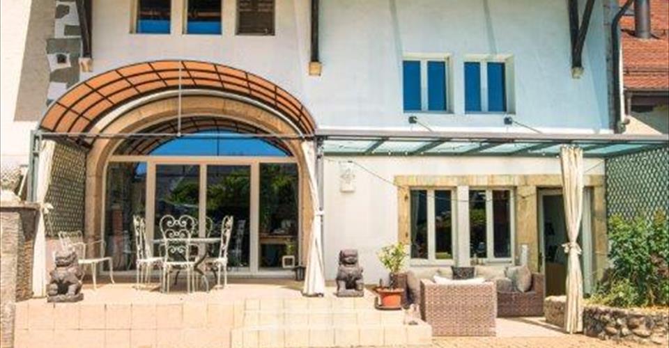 Nous vous proposons, à la vente cette magnifique et spacieuse villa située dans le village de Laconnex. Commune de laChampagne genevoise, Laconnex est située sur la rive gauche du Rhône et bénéficie d’un facile accès au centre ville de Genève, tant par transports publics que privés. Le village dispose d’une école primaire, restaurants et magasins de proximité. De plus, un marché se tient mensuellement en face de la Mairie. La maison de 15 pièces, d’une surface habitable de 374m², sise sur une vaste parcelle piscinable de 1’497m², se compose comme suit: REZ-DE-CHAUSSEE: – hall d’entrée; – bureau; – pièces de rangement/cagibi; – local technique; – wc visiteurs; – belle cuisine entièrement agencée et équipée avec des matériaux de qualité; – salle à manger donnant accès à une terrasse; – séjour avec cheminée donnant accès à une seconde terrasse. ETAGES (en demi-niveaux): – 7 belles chambres; – 3 salles de bains et salles de douche; – sauna, – buanderie. EXTERIEURS: – cour avec places de stationnement; – deux belles terrasses ombragées; – grand jardin joliment aménagé et arboré; – tiny house d’une surface de 24m² offre un espace idéal pour une salle de jeux, bureau ou encore atelier; – dépendance composée d’un séjour lumineux avec cuisine équipée et véranda, une chambre et un bureau, une grande salle de douche avec rangement et terrasse privative; – grand cabanon de jardin – atelier. La tiny house est idéale comme chambre d’appoint ou espace de travail, quant à la dépendance, elle conviendrait parfaitement pour des visiteurs, lesquels auraient un espace complètement privé. Il est à noter que l’ensemble de la propriété a fait l’objet de rénovations et de travaux d’entretien réguliers. La maison dispose d’un charme indéniable et offre un espace de vie au calme et à l’abri des regards. Une visite s’impose! Le prix sur demande