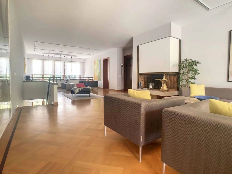 Erigée dans le courant des 1950 et bâtie sur trois niveaux, elle bénéficie d’un bel ensoleillement et propose de généreux volumes pour une surface utile d’environ 530 m².