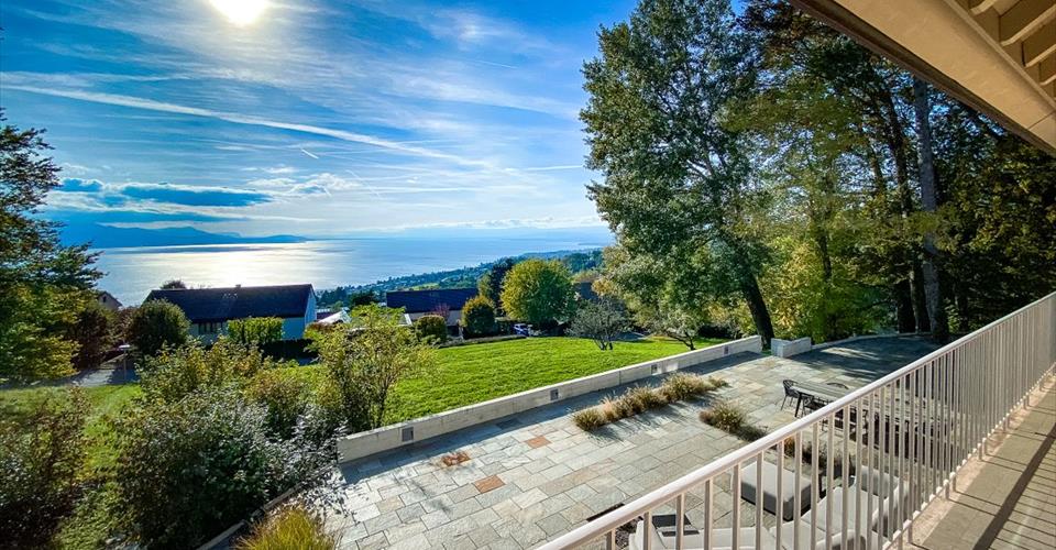 Magnifique propriété 11 pièces entièrement rénovée en 2018 avec beaucoup de goût et des matériaux d’excellente facture. Érigée sur une parcelle de près de 4’000m2 surplombant le lac, cette vaste demeure distribuée sur plus de 500m2 utiles vous offre de très beaux volumes intérieurs et extérieurs, 6 (voire 7) chambres à coucher, 5 salles de bain et une cave à vin hors du commun. Un étage complet au sous-sol aménagé en home cinéma et fitness, un garage double et une dizaine de places de parc extérieures dans la cour d’accueil viennent compléter ce magnifique objet. La création d’une piscine extérieure est envisageable. Sous-Sol: Salle de jeux et home cinéma Salle de fitness Buanderie avec espace rangement Salle de douche Chaufferie Cave Toilettes Rez-de-chaussée : Spacieux hall d’entrée Cave à vin (1’500 bouteilles) Grand bureau bibliothèque Vestiaire Cuisine entièrement agencée avec électroménager Gaggenau Salle à manger avec accès terrasse/jardin Séjour (cheminée) avec accès terrasse/jardin Cuisine « d’appoint » avec accès terrasse / BBQ Toilettes visiteurs 1er étage : Vaste suite parentale (cheminée) avec salle de bain et dressing, accès balcon Salon TV (ou chambre avec penderie) avec accès balcon Chambre 2 avec dressing, accès balcon. Chambre 3 Salle de bain complète Combles : Suite invités avec salle de bain attenante et dressing rangement (réduit) 2 chambres avec leur penderie respective 1 salle de bain