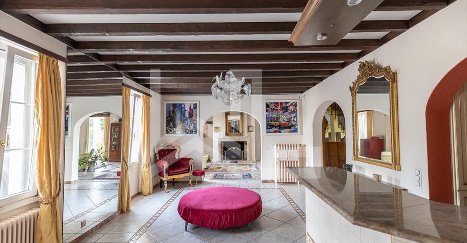 Située dans un parc verdoyant à deux pas du ventre-ville, cette maison de caractère est un véritable bijou. Conçue sur trois niveaux, elle bénéficie d’une surface généreuse de 325 m² et offre une luminosité exceptionnelle, baignant chaque pièce de lumière naturelle. Ce bien allie charme et authenticité, tout en étant idéalement situé pour profiter du calme et de la nature tout en restant au centre-ville, proche de toutes les commodités. Le jardin de plus de 2’800m2 est joliment arboré et complètement clôturé. Il offre de beaux espaces de réception et de belles terrasses parfaitement exposées, mais aussi un jacuzzi. La grande cour permet de garer de nombreuses voitures, ainsi qu’un couvert pour deux voitures et un box fermé. C’est une propriété avec fort potentiel, à proximité immédiate du centre ville!