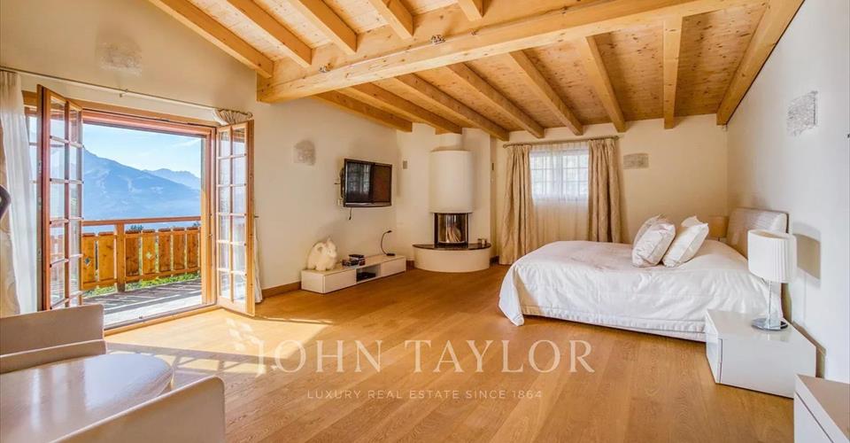 – Magnifique chalet d’environ 560m2 érigé sur une parcelle de plus de 1000 m2 – Sa position dominante au coeur de la montagne vous offrira un panorama à couper le souffle – Le calme et la tranquillité sont au rendez-vous – La disposition du chalet et ses nombreuses chambres, salons et espaces communs sont idéals pour une famille. Ce chalet de 5 niveaux se compose de : – 2 suites parentales comprenant chacune salle de bain, dressing et balcon offrant toutes deux une luminosité optimale – 5 autres chambres avec salle de bain indépendant – 3 salons – 1 bureau – 2 cuisines – Ainsi que de nombreux espaces pouvant être utilisés selon vos désires -4 places de parc intérieures viennent compléter ce bien – Ce bien peut être vendu en résidence secondaire, et également pour les non-résidents Suisses