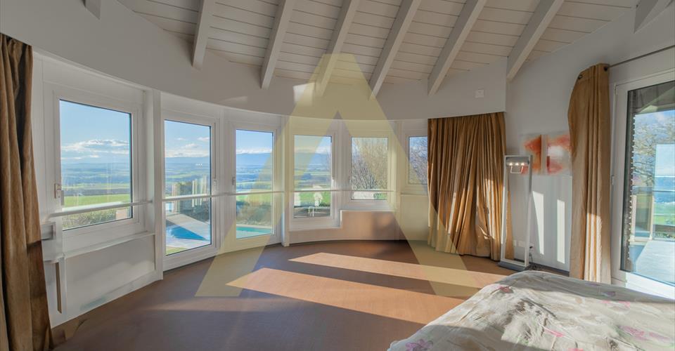 Nous vous présentons cette magnifique propriété qui saura vous séduire par son originalité, ses espaces impressionnants, sa situation privilégiée, dans un écrin de nature bénéficiant d’un calme absolu, mais restant proche de toutes les commodités. La configuration, le soin particulier apporté au choix des matériaux, font de ce bien d’exception une demeure atypique. Vous aurez tout le loisir de vous détendre au spa (hamman, jacuzzi), d’entretenir votre forme physique grâce aux infrastructures, sa piscine, sa salle de sport, et pour terminer de vous relaxer en prenant un verre au bar, à proximité d’une cave à vins climatisée. Vous aurez également la possibilité de visionner vos films préférés dans la salle de cinéma insonorisée et climatisée comprenant un équipement high-tech. De plus, cette propriété a l’énorme avantage de disposer d’un appartement de 2 pièces d’une surface d’environ 50m2 totalement équipé avec son entrée indépendante et sa terrasse. Espace rêvé pour le personnel de maison, une activité indépendante ou pour y accueillir vos invités. La maison principale répartie sur trois niveaux, dispose quant à elle au rez d’un énorme séjour d’une hauteur sous plafond de plus de 7m donnant accès sur l’extérieur et de grandes baies vitrées, permettant ainsi une luminosité exceptionnelle, d’une incroyable cheminée, d’une cuisine contemporaine entièrement équipée, d’une salle à manger, d’un wc-visiteurs et d’un bureau spacieux, bénéficiant d’une vue imprenable. Pour accéder à l’étage, vous emprunterez un escalier magistral qui vous conduira aux quatre chambres à coucher dont une suite parentale et à trois salles de bain. Un garage triple ainsi qu’une chambre à lessive viennent compléter ce bien. Non loin de là, vous trouverez également l’International School of Lausanne qui accueille et propose les programmes destinés aux élèves de 3 à 18 ans. N’hésitez pas … Vous serez forcément séduit par cet objet coup de coeur profitant d’un paysage à couper le souffle changeant au rythme des saisons !