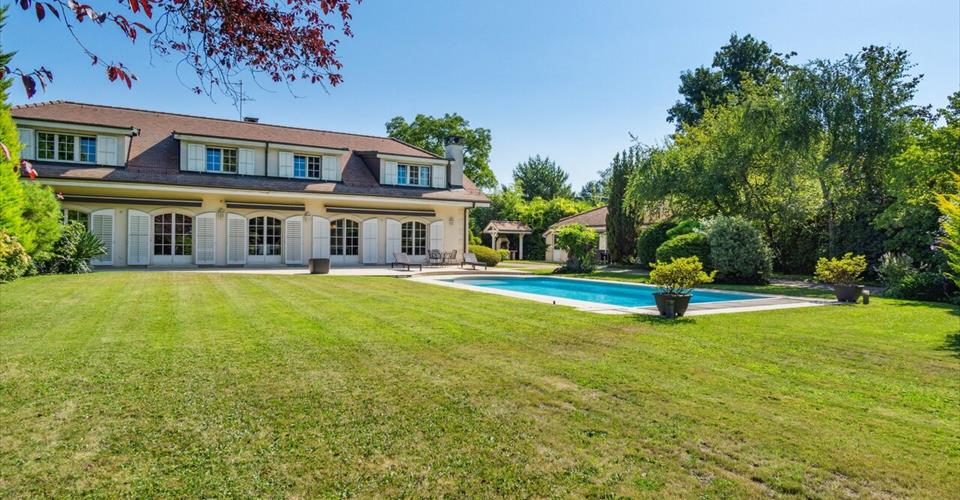 Vous serez immédiatement conquis par les volumes et les nombreux atouts de cette magnifique propriété de 11 pièces, édifiée sur une très belle parcelle d’environ 2’500 m² sans vis à vis et au calme, à quelques minutes du Vieux-Carouge et de ses commodités. Entièrement rénovée en 2007 avec des matériaux de qualité, cette maison offre une surface utile de 735 m² répartie sur deux niveaux + sous-sol ainsi qu’une dépendance aménagée de 44 m². Le rez-de-chaussée, extrêmement lumineux grâce aux nombreuses et charmantes fenêtres cintrées, offre de belles et spacieuses pièces de vie dont un agréable salon/salle à manger, un second salon, profitant chacun d’une belle cheminé invitant à la convivialité et qui ravira famille et amis, ainsi qu’une cuisine entièrement équipée et dotée d’un bel îlot pouvant accueillir jusqu’à 7 personnes. Vous bénéficierez également d’une chambre d’invités avec sa salle de douche, d’un bureau et de deux spacieux hall. L’espace nuit au premier étage comprend une master bedroom avec sa salle de bains complète, baignoire et douche double, ainsi qu’un dressing entièrement aménagé, quatre belles chambres à coucher jouissant chacune de sa propre salle d’eau avec toilettes. Le sous-sol quant à lui dispose d’une salle de home cinéma, d’une salle de détente avec hammam et jacuzzi, d’une cave à vins et d’une chambre froide, d’une buanderie et de sa salle de repassage ainsi que d’un local technique et d’un abri PC. A l’extérieur de la maison, vous pourrez profiter du magnifique jardin avec sa piscine à l’abri des regards et de ses grandes terrasses qui vous réservent des belles soirées d’été. Au sein d’une jolie cour pavée, un couvert pour 4 voitures et de nombreuses places extérieures viennent compléter ce bien d’exception.