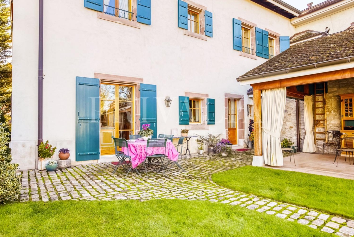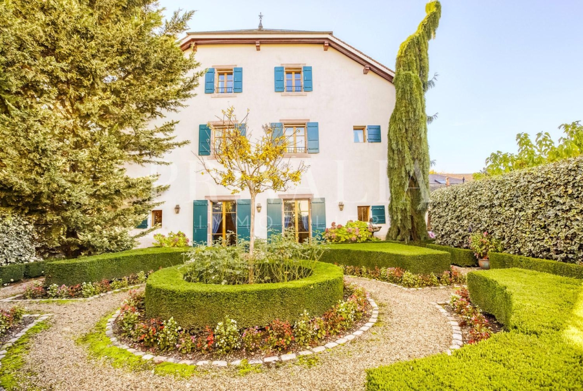 Au cœur du charmant village de Jussy, cette luxueuse demeure du début du 19ème siècle a conservé son atmosphère authentique et son charme unique. Elle comprend 11 pièces dont 5 chambres à coucher parfaitement réparties sur une surface habitable d’environ 600 m2 sur une parcelle d’environ 980 m2.