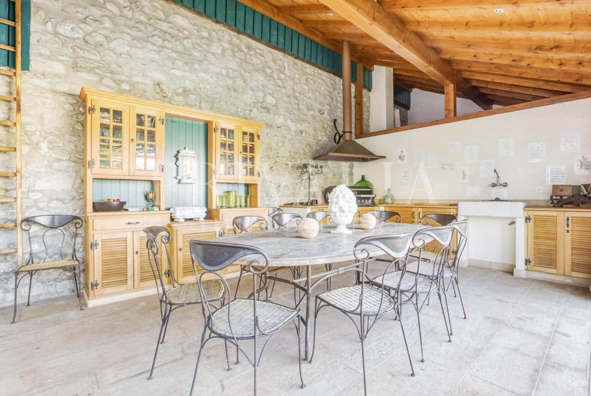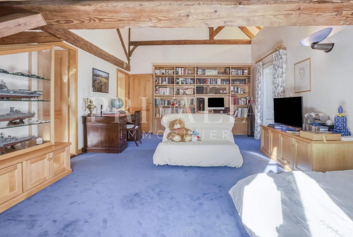 Entièrement rénovée en 2000 avec des matériaux nobles et haut de gamme, elle a conservé son atmosphère authentique et son charme unique. Elle dispose d’une architecture élégante et soignée ainsi que de finitions luxueuses dont notamment, de belles hauteurs sous plafond avec d’impressionnants volumes, une superbe chambre de maître avec son salon privatif, des belles pièces de réception en enfilade, une cuisine entièrement équipée et aménagée, un majestueux poêle en céramique, du parquet en bois massif, des poutres d’époque, un somptueux escaliers escalier en noyer massif, des stores électriques, un système de sécurité complet (alarme, porte blindée et vitrage anti-effraction), ou encore un magnifique jardin comprenant une piscine à débordement et des très beaux aménagements extérieurs.