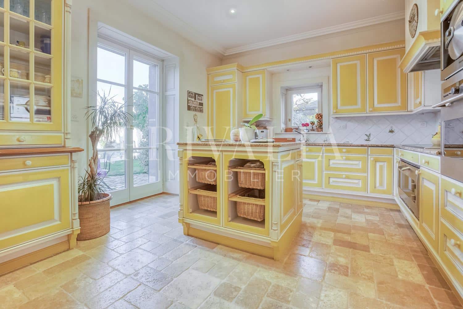– Cuisine équipée et agencée avec accès terrasse et jardin