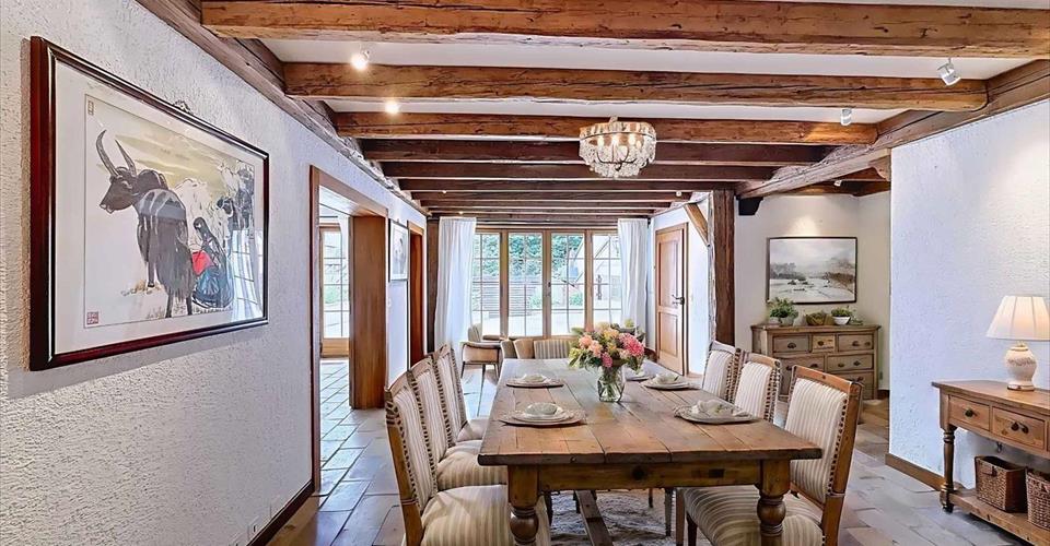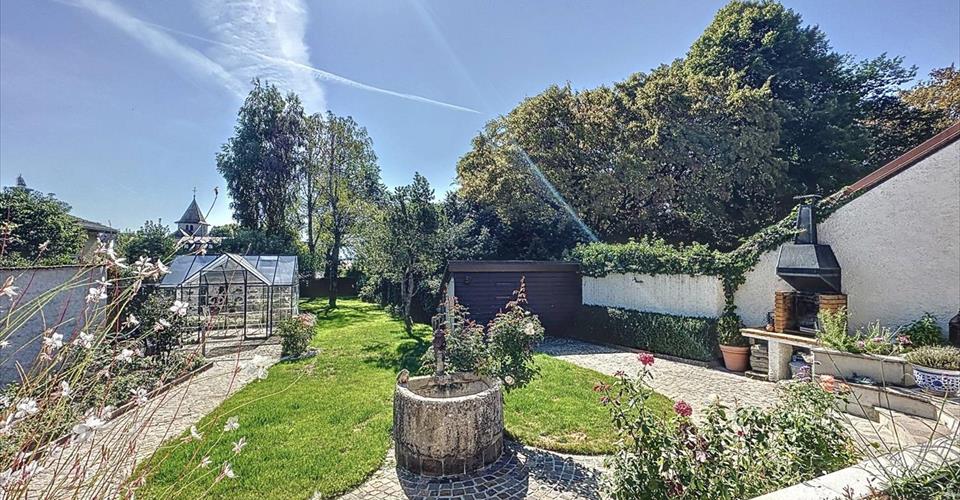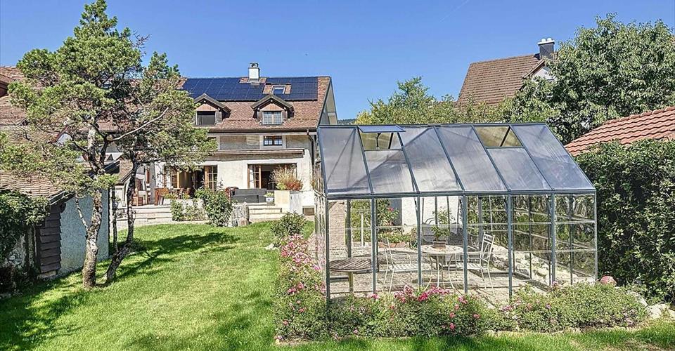 Barnes I La Côte a le plaisir de proposer à la vente, cette magnifique bâtisse érigée sur une parcelle de plus de 1’000 m², au cœur du village de Genolier. Le rez-de-chaussée se compose d’un hall d’entrée, d’un double séjour aux poutres apparentes avec cheminée, d’une salle à manger, d’un office et d’une cuisine équipée avec îlot central. Toutes ces pièces disposent d’accès à une belle terrasse et au jardin. Des WC visiteurs et un vestiaire complètent ce niveau. Le premier étage abrite l’espace nuit, composé de quatre chambres dont une suite parentale avec dressing et salle de bains, deux belles chambres avec chacune des espaces en mezzanine et leurs salles de bains, une quatrième avec sa salle de bains et toilettes. De nombreux rangements intégrés complètent ce niveau. Le dernier niveau donne accès à un espace bureau / bibliothèque au calme, bénéficiant d’air conditionné. Le sous-sol, possédant deux accès distincts. Il bénéficie d’une salle de jeux / home cinéma, d’une salle de sport offrant un espace spa avec jacuzzi, sauna, douche et toilettes, d’une grande buanderie et d’une belle cave à vin. Un logement de 2.5 pièces avec entrée indépendante distribué sur deux niveaux, avec une kitchenette, un salon, une salle de douche / toilettes se trouve également à ce niveau. Les aménagements extérieurs sont soignés et le jardin magnifiquement arboré de plus de 730 m² permettent une agréable intimité. Une cour pavée agrémentée d’un garage pour deux véhicules équipé d’une station de recharge ajoute au confort de cette propriété. La qualité de construction est très bonne, cependant certains travaux de rafraichissement sont à envisager.
