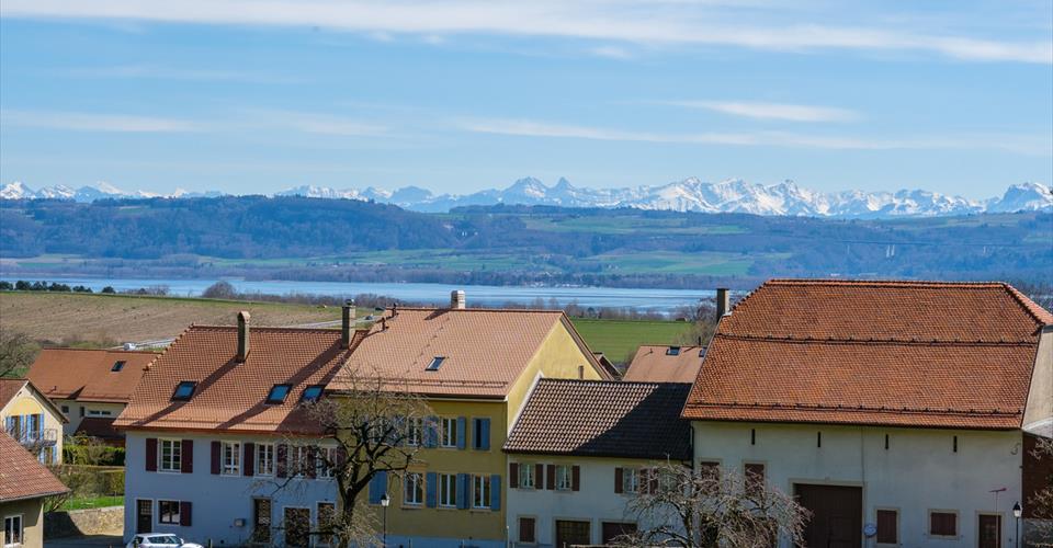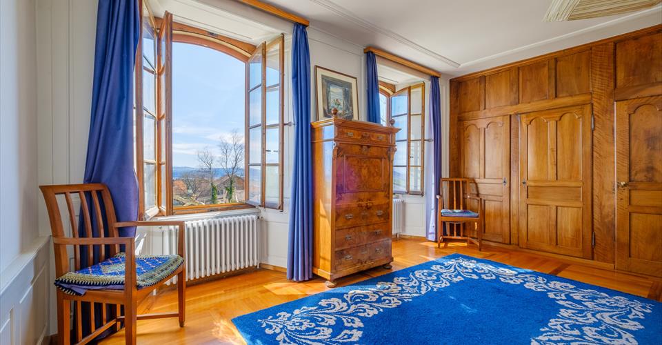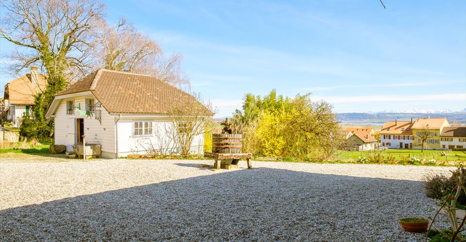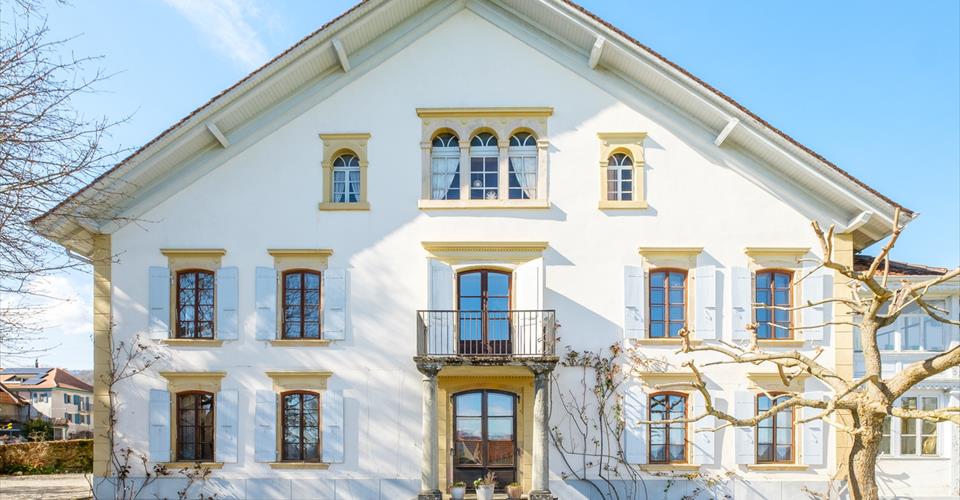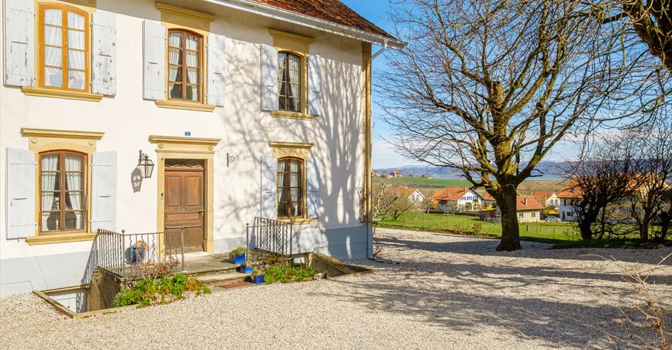 Un beau portail en fer forgé donne accès à la cour d’entrée de cette superbe maison vigneronne construite au XVIIème siècle et transformée aux XVIIIème et XIXème siècles. La bâtisse principale d’environ 600m2 habitables est actuellement composée d’un grand logement de maître et d’un cabinet médical avec son entrée indépendante. D’une superficie de plus de 8000m2, la propriété est située au cœur du village et bénéficie d’une position dominante qui lui offre une magnifique perspective sur les champs alentour, les coteaux de Bonvillars et le lac de Neuchâtel. Le logement principal de plus de dix pièces a été entretenu de manière régulière. Il est organisé sur trois étages dont les combles et dispose de jolies pièces de réception, six chambres à coucher et deux salles de bains. Une rénovation de ces espaces est à prévoir pour répondre aux besoins des plus exigeants et disposer du fort potentiel d’aménagement de cette demeure avec de magnifiques combles, plusieurs vérandas et un immense sous-sol doté d’un four à pain, de nombreuses caves et pièces voûtées. Elle propose, en outre, une écurie indépendante de quatre box attenante à une jolie prairie. Une terrasse couverte, un ancien séchoir, un garage souterrain pour quatre voitures, et quatre à cinq places de parc extérieures complètent cette superbe propriété d’un ensemble architectural rare. Le village de Bonvillars est à dix minutes d’Yverdon et trente-cinq minutes de Lausanne. Tout proche de toutes les commodités, il profite d’une très belle architecture et d’un vignoble renommé qui s’étend le long du lac de Neuchâtel. Les paysages de cette région permettent de jolies balades et découvertes.