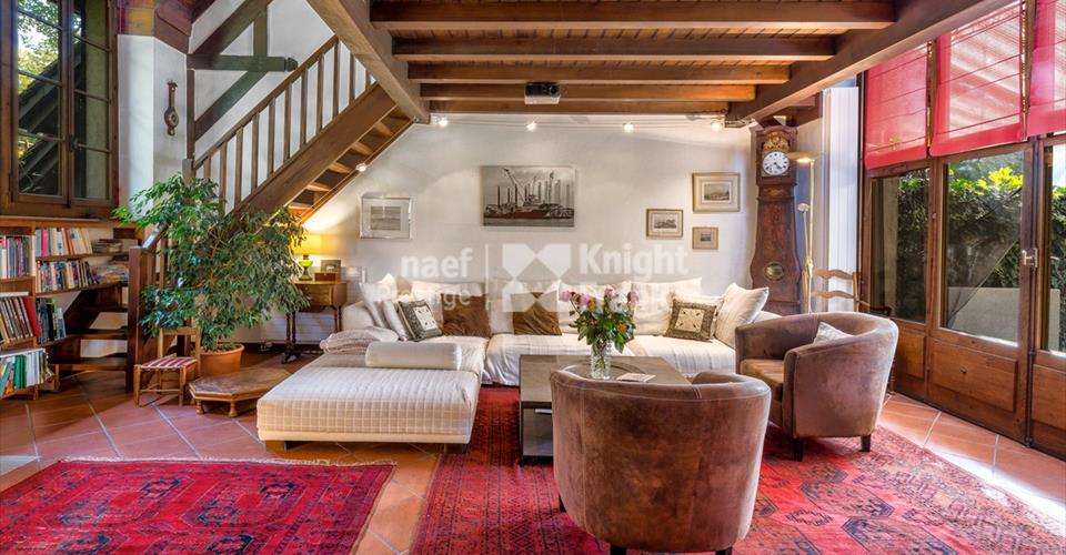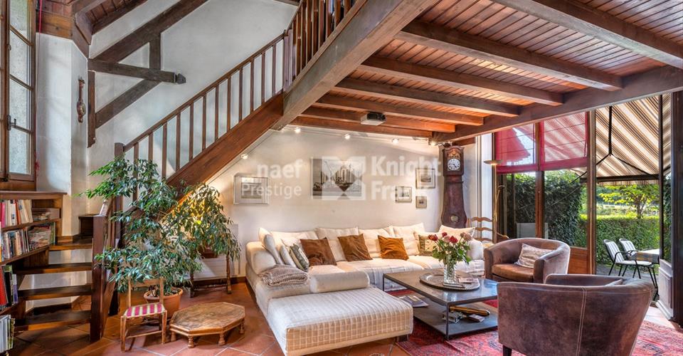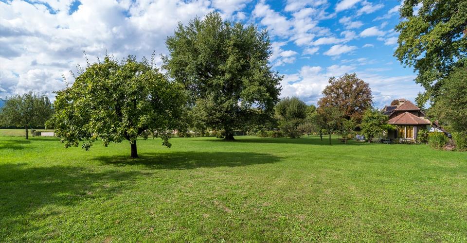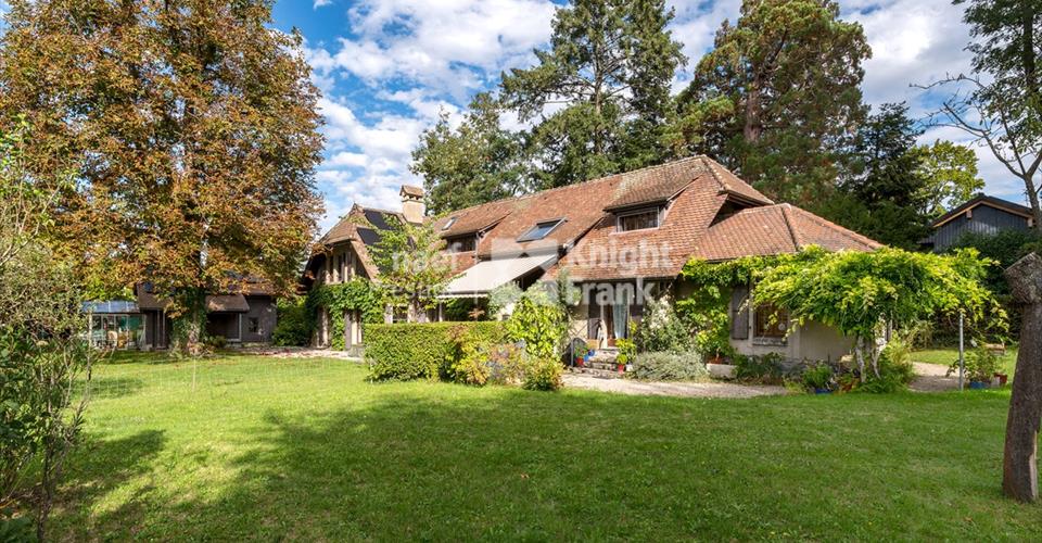 Laissez-vous séduire par cette charmante maison datant de 1907, à seulement quelques pas du lac, offrant un cadre de vie unique où intimité et sérénité sont au rendez-vous. Érigée sur une généreuse parcelle de 3’845 m², cette demeure pleine de charme, au style cottage, se compose de deux habitations indépendantes, parfaites pour une grande famille ou pour recevoir en toute autonomie. La maison principale, agrandie dans les années 80 et soigneusement entretenue, dispose de 5 chambres ainsi que de pièces à vivre conviviales et lumineuses, largement ouvertes sur le jardin. Le second logement, indépendant mais pouvant aisément être relié à la maison, propose un salon, une cuisine, une véranda, une salle d’eau et une chambre à l’étage. À l’extérieur, un magnifique jardin paysager vous attend, avec un étang, un potager et des arbres fruitiers. Un garage de 32 m², aménagé en atelier avec mezzanine et toilette, vient compléter l’ensemble. Bénéficiant d’un environnement calme et jouxtant un terrain non constructible, cette propriété garantit tranquillité et vue dégagée. Véritable havre de paix, elle séduira les amateurs de nature, de quiétude et de vastes espaces.
