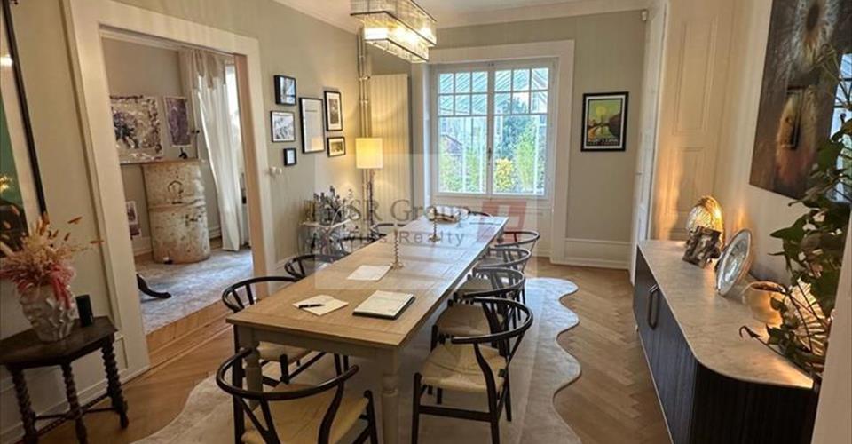 Niché au coeur d’un écrin de verdure en plein centre-ville, dans le triangle d’or bordé des rues Agasse, Clos-Belmont et Amandolier, cet hôtel particulier érigé entre la fin du XIXe et le début du XXe siècle propose une surface habitable de 400 m2 (520 m2 utiles) répartie en 12 pièces comme suit: Au rez, vaste entrée avec wc visiteurs, bibliothèque/bureau, séjour avec cheminée d’époque avec miroir trumeau, double salle à manger avec accès à l’extérieur et cuisine indépendante équipée. Au premier étage, 3 chambres à coucher dont une suite parentale avec salle-de-bains et dressing. Une salle-de-bains supplémentaire pour les deux autres chambres. Au deuxième étage, 3 chambres à coucher, salle-de-bains et seconde cuisine équipée (espace idéal pour recevoir ou pour du personnel de maison). Au sous-sol, chaufferie, cave-à -vins, espaces de stockage, box pour 2 petites voitures ou un gros SUV. Vaste buanderie équipée. Les extérieurs, de 650 m2, comprennent des stationnements pour 3 véhicules, des espaces verts, une terrasse et une pergola dinatoire de plus de 30 m2. Rare à la vente, cet objet unique propose des attributs d’époque qui lui confèrent un charme unique: parquet anciens, cheminées en marbre, moulures, rosaces, soubassements extérieurs en pierres de taille.