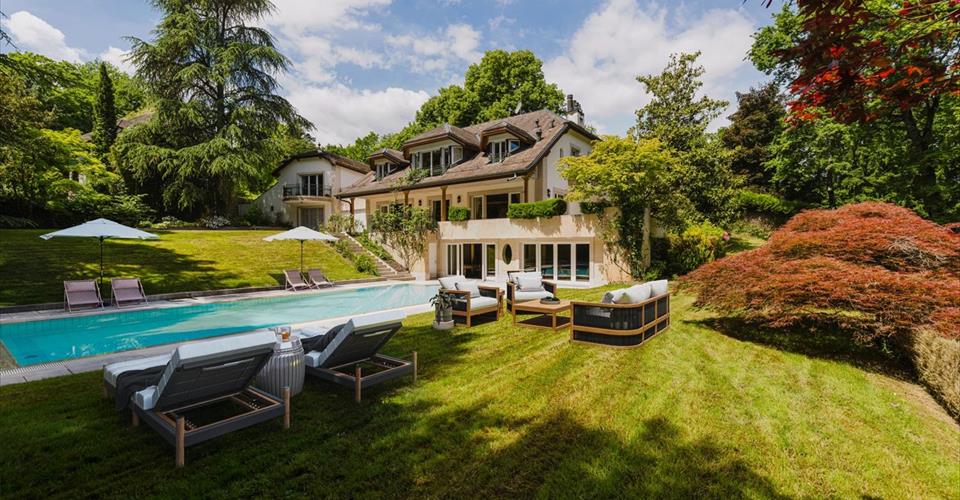Située dans un environnement préservé, à quelques minutes seulement du centre de Genève, cette propriété remarquable déploie près de 900 m² habitables, au coeur d’un terrain arboré d’env. 4’500 m². Dès l’entrée, les volumes généreux et l’agencement fluide des pièces de réception créent une atmosphère accueillante. Plusieurs salons avec cheminées offrent différents espaces de vie, baignés de lumière naturelle et ouverts sur le jardin et la piscine. A l’étage, la partie nuit se compose de cinq grandes suites, certaines dotées de cheminées ou de balcons, offrant à chacun un espace privé confortable et raffiné. Le niveau inférieur, également en rez de jardin, est dédié au bien-être et à la détente. On y retrouve un espace spa, une salle de sport, une salle de massage, une cave à vin, ainsi qu’un vaste garage pouvant accueillir plusieurs véhicules. A l’extérieur, la piscine s’intègre harmonieusement à la terrasse, accessible également depuis un salon à l’ambiance orientale, pensé pour prolonger les instants de calme et de convivialité. Discrète, rare et élégante, cette propriété offre une qualité de vie incomparable dans l’un des secteurs les plus recherchés de Genève sur la rive droite.