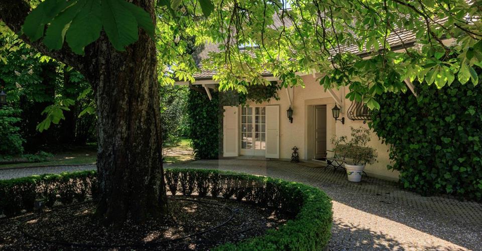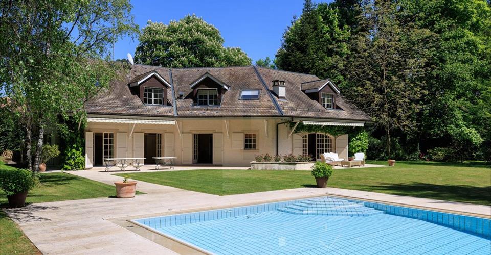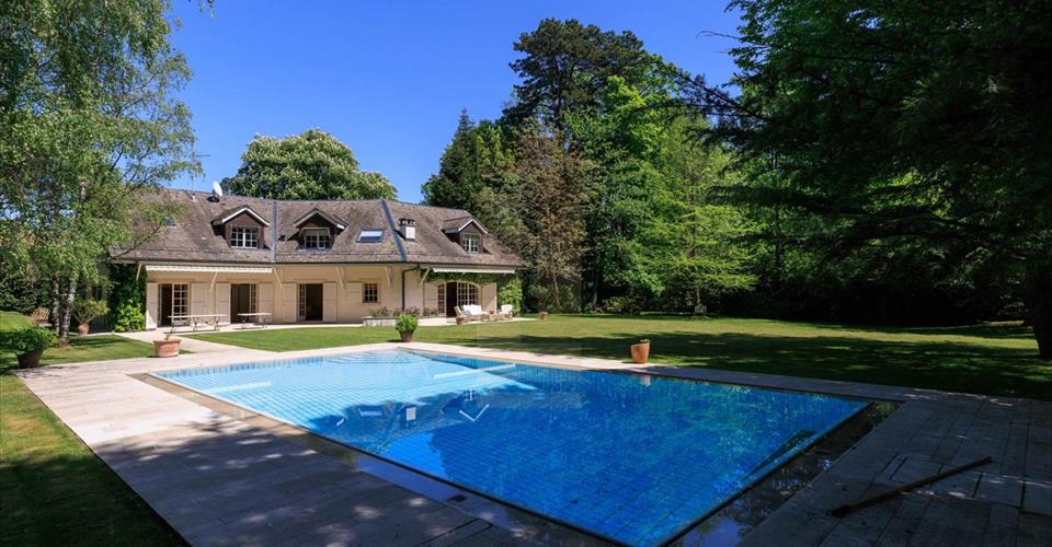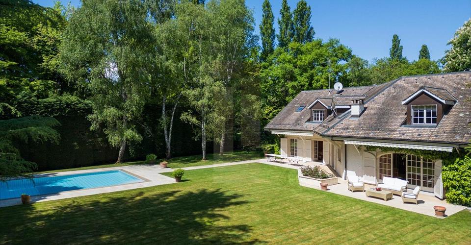 Située dans la commune prisée de Vandoeuvres, cette propriété exceptionnelle se trouve à proximité du Golf de Cologny, dans un cadre résidentiel calme et verdoyant. La parcelle de 2’750 m² joliment arborée et clôturée, s’étend avec une zone supplémentaire de 700 m² (en jouissance exclusif), offrant un total de 3’454 m² de terrain. Construit en 1985 et rénové en 2000, la maison principale propose 450 m² habitables et 650 m² utiles. Les droits à bâtir dépassent 800 m². Rez-de-chaussée : Grand salon avec cheminée, salle à manger avec accès terrasse, cuisine entièrement équipée avec coin repas, bureau indépendant, toilettes invités. Etage : Suite parentale avec salle de bains complète et dressing, une deuxième chambre/dressing, le coin enfant se compose de 3 chambres d’enfants, 2 salles de bains. Sous-sol : 2 chambres avec fenêtres, salle de douche, cave à vin, salle polyvalente, buanderie, locaux techniques. Annexes : Dépendance indépendante de 3 pièces au-dessus du garage, idéal pour invités ou personnel. Garage fermé pour 3 voitures. Extérieurs : Une vaste cour d’entrée avec portail automatique entoure un majestueux marronnier central et permet le stationnement de 8 véhicules. Le jardin soigneusement aménagé comprend une piscine chauffée avec store automatique (remplacé en 2022), créant un cadre idyllique et privé. À quelques minutes des commodités des villages de Vandoeuvres et Cologny, et à 15 minutes du centre-ville de Genève, ce bien rare offre un cadre de vie exceptionnel dans un environnement calme et recherché.
