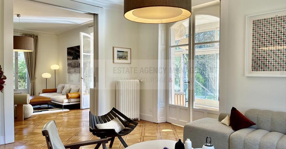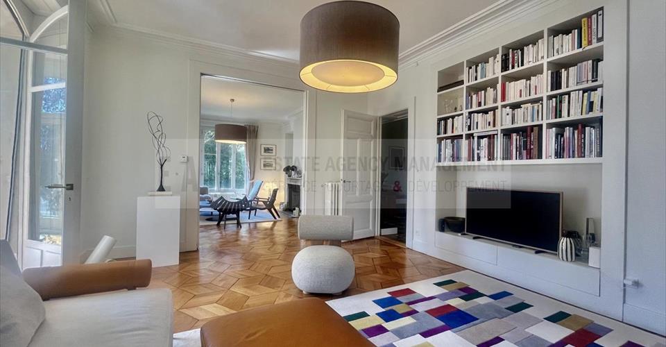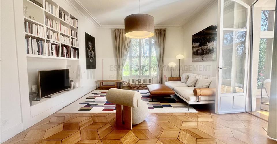 Dated from the early XXth century, this beautiful property, designed by the renowned architect Antoine Leclerc, is ideally located on a quiet and prestigious avenue in the heart of the commune of Chêne-Bougeries in Geneva. The villa is spread over 500m2 and seats on a generous plot of nearly 3000m2. Renovated a few years ago with taste and refinement, the interior is both contemporary and authentic. This property will offer you the charm of another era while benefiting from today’s comfort. As you enter the villa, a generous entrance leads to the closed and fully equipped kitchen, to the dining room as well as to a double living room in a row leading to the veranda with view and access to the garden. You will access the sleeping area on the first floor by a Renaissance style staircase: four generous bedrooms, a beautiful terrace facing the sumptuous garden, a large bathroom and a shower room complete this first floor. The attic, spread over 100m2, will delight the happy occupants of this Master bedroom with undeniable magic and breath-taking views of the garden. A bathroom, fitted wardrobes and a study leading to the tower of the villa complete this top floor. The fully finished basement offers a gym and sauna, a laundry room, technical rooms as well as a service bedroom and bathroom. The century-old wooded garden offers unparalleled tranquillity. EAM is pleased to offer this rare listing for rent and remains available for further information. Brochure and viewing upon request. Availability: September 2025 or to be agreed LE CHARME INEGALABLE DE LA VIEILLE PIERRE Cette villa d’architecte, signée Antoine Leclerc, date du début du XXème siècle et est idéalement située sur une avenue prisée et calme, au coeur de la commune de Chêne-Bougeries. Cette propriété de maître occupe une parcelle de près de 3000m2. Conçu avec goût et raffinement, c’est un intérieur à la fois contemporain et authentique que des architectes d’intérieur de renom ont conçu pour cette villa au cachet d’antan et au confort d’aujourd’hui. L’espace jour se compose comme suit: une généreuse entrée dessert la cuisine fermée et entièrement équipée, un double salon en enfilade menant à la véranda avec vue et accès au jardin ainsi que la salle à manger. Puis, en empruntant la cage d’escalier d’époque, vous accédez à l’espace nuit du premier étage: quatre généreuses chambres à coucher, menant toutes à une belle terrasse côté jardin. Une grande salle de bains et une salle de douche complètent ce niveau. L’attique, mesurant plus de 100m2 en pignon, saura ravir les heureux occupants de cette chambre de maître au charme incontestable et à la vue imprenable sur le jardin de la propriété. Une salle de bain, des armoires encastrées ainsi qu’un bureau menant à la tour complètent ce dernier étage. Un sous-sol entièrement aménagé abrite une salle de sport et son sauna, une buanderie, les locaux techniques ainsi qu’une chambre et salle de bains de service. Le jardin arboré centenaire offre une quiétude sans pareil à cet objet rare à la location. Dossier et visite sur demande. Disponibilité: Septembre 2025 ou à convenir