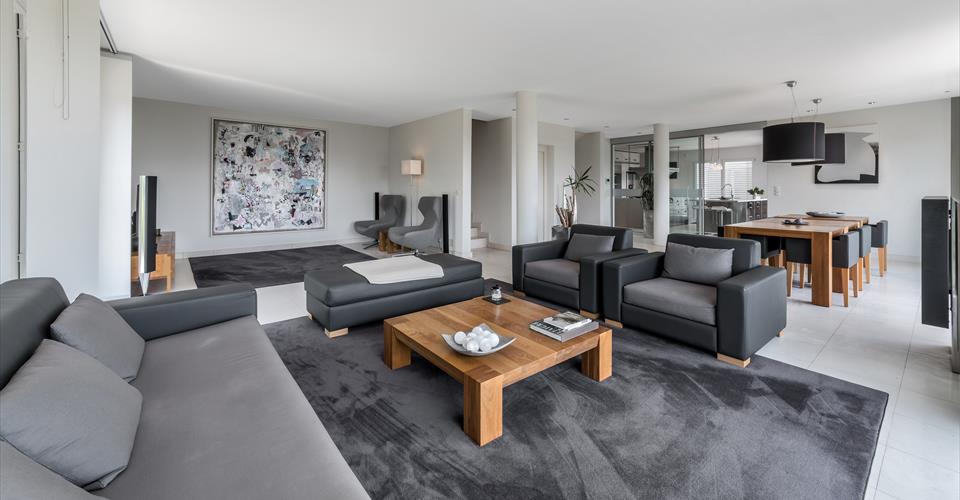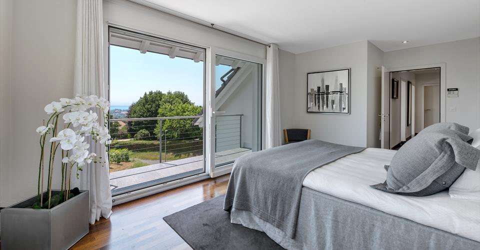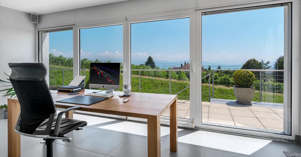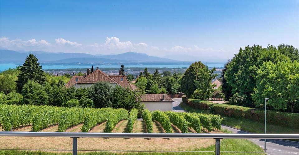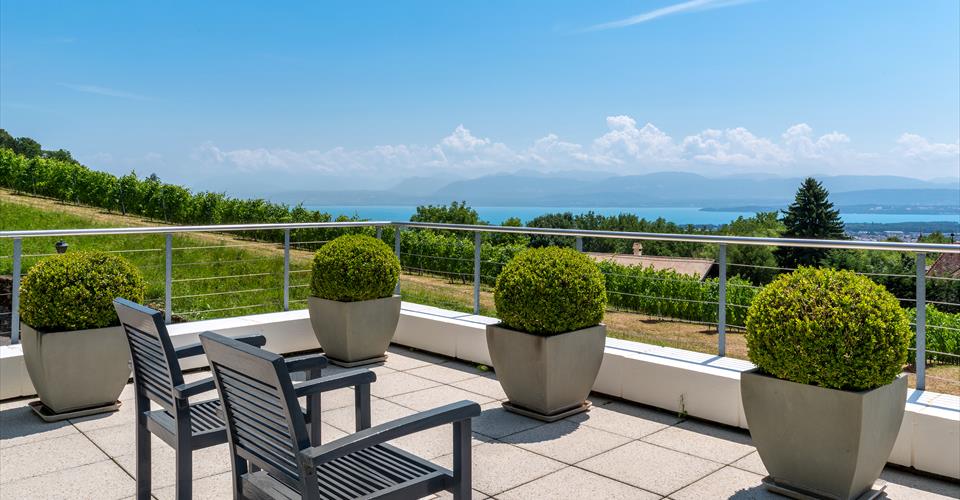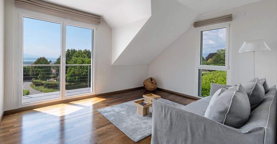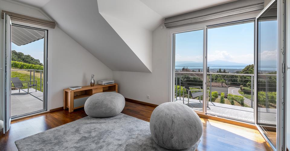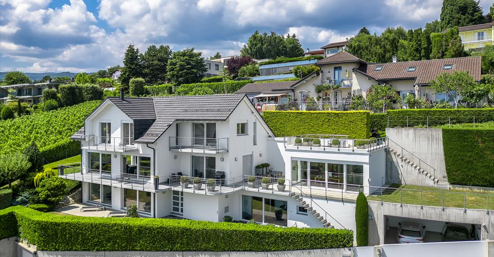 Cette magnifique villa moderne de haut standing, située dans la charmante commune de Begnins, bénéficie d’une vue imprenable sur les vignes, le lac et les montagnes. Construite sur une belle parcelle paysagée d’environ 1’000 m2 et récemment rénovée, elle dispose de superbes terrasses, de vastes balcons et d’un agréable jardin. D’une surface totale d’environ 660 m², cette maison aux volumes généreux offre 13 pièces baignées de lumière réparties sur 3 niveaux dont ,entre autres, une triple réception avec cheminée, une superbe cuisine équipée, 4 chambres dont 2 suites , un salon de détente avec SPA et un grand bureau indépendant. Toutes ces pièces s’ouvrent sur une terrasse ou un balcon et profitent d’un superbe panorama. Un ascenseur et de nombreux espaces de rangement assurent un confort de vie optimal. 2 garages dont un double et 2 places de stationnement extérieures complètent idéalement cet ensemble harmonieux aux finitions haut de gamme. Une opportunité rare de vivre dans un environnement d’exception, alliant modernité, confort et paysages fabuleux. Pour plus d’informations, n’hésitez pas à nous contacter.