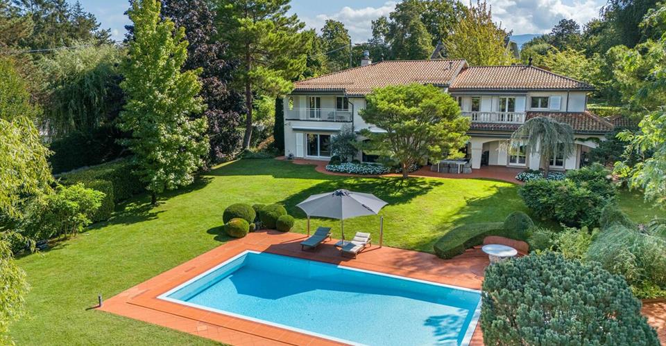 Cette splendide villa individuelle est située sur une parcelle privative et sans vis-à-vis, au cœur de Collonge-Bellerive à quelques pas du Lac. La propriété dispose d’une splendide parcelle de plus de 2500m2, joliment arborée d’arbres centenaires et d’un jardin parfaitement entretenu. Une grande piscine, un appartement indépendant et un petit pool house complètent cet extérieur. La propriété, rénovée entièrement en 2014, dispose au rez-de-chaussée d’un grand bureau, d’un WC visiteur, d’une grande pièce de vie, d’une salle à manger avec une grande cuisine ouverte. Une salle de douche avec entrée indépendante complète cet étage. L’étage est composé de 6 chambres en suites avec pour une chambre et la master, chacun un balcon. Le sous-sol quant à lui est composé de diverses pièces telles qu’une salle de fitness avec douche, d’une buanderie complète, de deux chambres avec leur salle d’eau complète, avec un accès indépendant. Un ascenseur dessert les étages de la propriété. La propriété dispose d’un garage double et de nombreuses places de parking extérieurs.