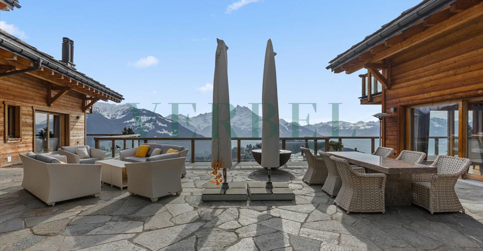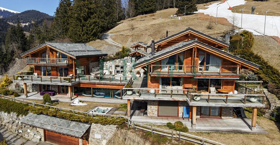 Nichée dans un écrin naturel d’exception, cette propriété prestigieuse bénéficie d’un emplacement privilégié, offrant une expérience ski-in/ski-out pour un accès direct aux pistes. Exposée plein sud, elle profite d’un ensoleillement optimal tout au long de la journée et offre, en soirée, un coucher de soleil à couper le souffle sur les Dents du Midi, illuminant les sommets d’une lumière dorée. Caractéristiques de la propriété : – Surface habitable : ~570 m² – Jardin paysager : ~570 m², soigneusement aménagé pour une intimité absolue – Volume généreux : ~3’335 m³, alliant vastes espaces et luminosité naturelle – Espace Wellness : espace bien-être de luxe offrant une expérience de détente intimiste – Stationnement : 4 places de parc extérieures et un garage sous-terrain pouvant accueillir 3 véhicules , offrant un confort d’accès optimal – Orientation : Plein sud, offrant des panoramas exceptionnels et une luminosité incomparable Composition de la propriété Chalet 1 – Confort et authenticité (7.5 pièces) – 3 Suites et 3 chambres à coucher – 4 salles d’eau élégantes – Cuisine ouverte sur une salle à manger lumineuse et un séjour spacieux – Séjour offrant une vue panoramique sur les Dents du Midi et un accès à la terrasse privative – Accès direct à l’espace wellness Chalet 2 –Élégance et raffinement (5.5 pièces) – 3 suites et 1 chambre à coucher – 3 salles d’eau – Cuisine avec îlot central, ouverte sur un vaste séjour et salle à manger – Séjour baigné de lumière avec vue imprenable sur les Dents du Midi et accès à une terrasse privative – Accès direct à l’espace wellness Un espace extérieur conçu pour le plaisir et la convivialité La grande terrasse panoramique a été aménagée pour offrir des moments inoubliables en famille ou entre amis. Vous y trouverez : – Une majestueuse table en granit, parfaite pour partager des repas face aux montagnes – Des canapés d’extérieur élégants et confortables, invitant à la détente – Un brasero, pour prolonger les soirées sous les étoiles – Un barbecue, idéal pour des grillades conviviales Conçue pour les grandes familles Pensée pour accueillir grandes familles et hôtes, cette propriété unique offre deux chalets spacieux, permettant à chacun de profiter d’un équilibre parfait entre convivialité et intimité. Un art de vivre entre luxe et nature L’architecture de cette propriété met en avant la noblesse des matériaux, avec un mariage harmonieux pour créer une atmosphère à la fois authentique et contemporaine. De larges ouvertures laissent entrer la lumière naturelle et subliment le cadre enchanteur de la montagne. Un sanctuaire de bien-être et de détente Pensée pour offrir un confort absolu, la propriété dispose d’un espace bien-être exclusif avec une vue exceptionnelle sur les Dents du Midi et est accessible par les deux chalets : – Piscine intérieure chauffée avec une cascade – Sauna & hammam – Jacuzzi intérieur – Jacuzzi extérieur – Bar & lounge détente – Cascade Après une journée sur les pistes, ce havre de paix invite à la relaxation et aux moments de convivialité dans une atmosphère feutrée et luxueuse. Un lieu d’exception, où chaque détail a été conçu pour offrir une expérience alpine unique, entre prestige, sérénité et moments inoubliables en famille, sublimés par la magie des couchers de soleil sur les cimes. Nous sommes à votre disposition pour de plus amples informations ou pour l’organisation d’une visite.