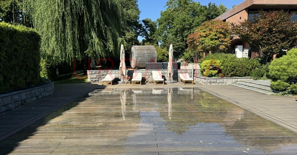 Idéalement située à Cologny, cette propriété de prestige avec une vue imprenable sur le lac, les montagnes, le jet d’eau et la vielle ville est disponible à la location. Le bien dispose d’un espace de vie généreux d’environ 700m2 et se distribue de la manière suivante: Le Rez-de-chaussée dispose d’un large hall d’entrée, d’une cuisine avec îlot et buanderie attenante, d’une salle à manger d’environ 30 m2, d’un salon spacieux d’environ 70m2 avec bibliothèque intégrée et cheminée, accès au balcon et à la salle de jeux attenante. Côté nuit, vous trouverez un dégagement avec rangements et wc visiteurs, une chambre avec accès à la terrasse et une salle de douche (lavabo, wc et douche), ainsi qu’ une suite parentale de 25 m2, composée d’un grand espace dressing et une salle de bains complète (double vasque, baignoire îlot, douche, wc indépendant) avec rangements. L’ancien garage, relié à la cuisine, a été transformé en un espace supplémentaire avec des rangements, des réfrigérateurs et congélateurs additionnels, des toilettes pour le personnel et mène à un coin repas extérieur ombragé, pourvu d’une grande table pouvant accueillir 12 convives et d’un barbecue. Vue sur le lac depuis la salle à manger, le salon, la salle de jeux, la cuisine, le hall d’entrée, la chambre et la salle de bain master. Vues sur le parc de 6500m2 depuis toutes les autres pièces. Le rez-de-jardin se distingue par un spacieux salon avec cheminée, offrant un accès direct au jardin d’hiver. Ce dernier, composé de grandes baies vitrées, a été aménagé en salle de sport, offrant une vue imprenable sur le parc. Depuis le jardin d’hiver, vous accédez à un bureau, à l’espace sauna ainsi qu’à la chambre numéro neuf, équipée de toilettes séparées (voir plan). À droite de l’escalier, un dégagement mène aux deux premières chambres qui partagent une salle de bains. En suivant le couloir à gauche de la cheminée, vous trouverez quatre autres chambres, dont l’une bénéficie d’une salle de bains privative. Ce couloir dessert également une salle de bains supplémentaire et une salle de douche. Trois des chambres disposent d’un accès direct au jardin, renforçant leur lien avec l’extérieur. Le rez-de-jardin comprend également une chaufferie, un studio, une cave à vins, ainsi que trois pièces de rangement, dont l’une est dédiée à la piscine. Enfin, un deuxième escalier intérieur, situé entre l’entrée et la buanderie, relie le rez-de-jardin au rez-de-chaussée. L’extérieur est agrémenté de terrasses, d’un grand jardin, d’un sauna et d’une piscine chauffée avec fond mobile en teck. Il y a une zone verger avec des arbres fruitiers et une zone avec potager. Beaucoup d’oiseaux et d’écureuils vivent sur la propriété. Il y a aussi trois poules. Un parking pouvant accueillir dix voitures. Informations complémentaires : – système de domotique, les lumières et stores sont gérée à travers une application; – système de sécurité avec caméra sur toute la propriété; – système de biodynamisation de l’eau de la maison.