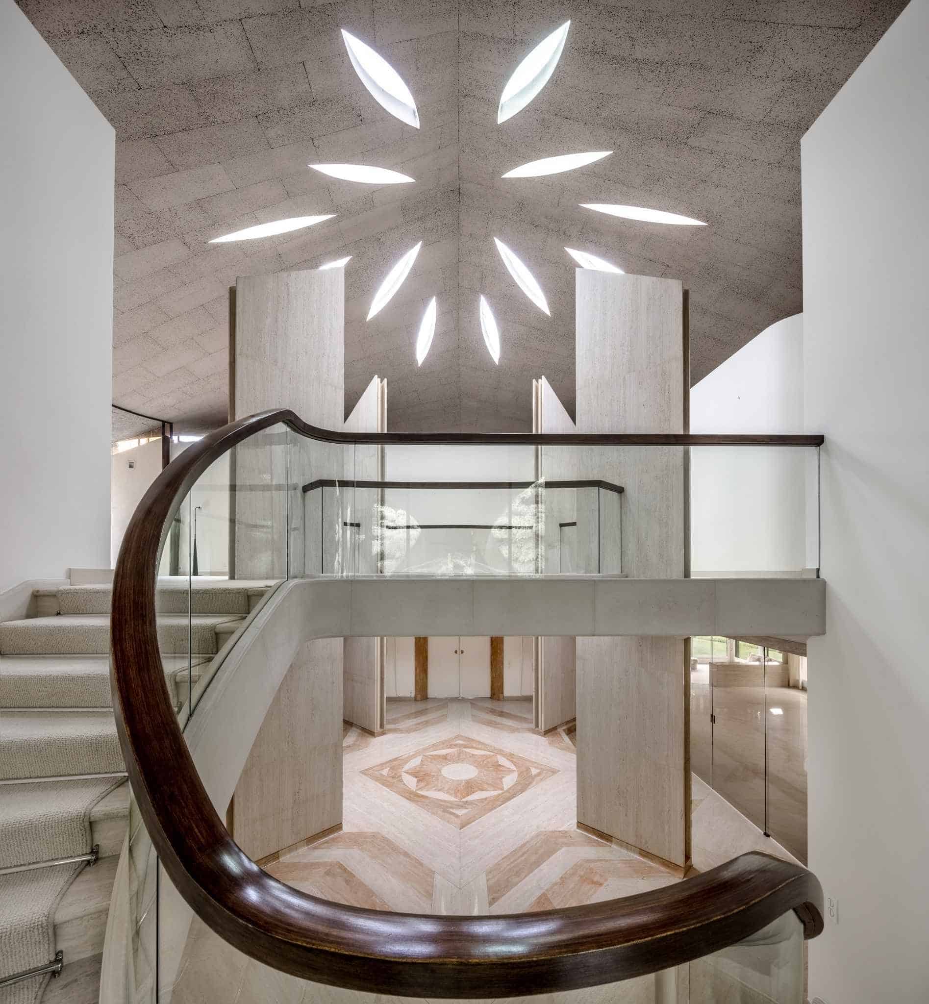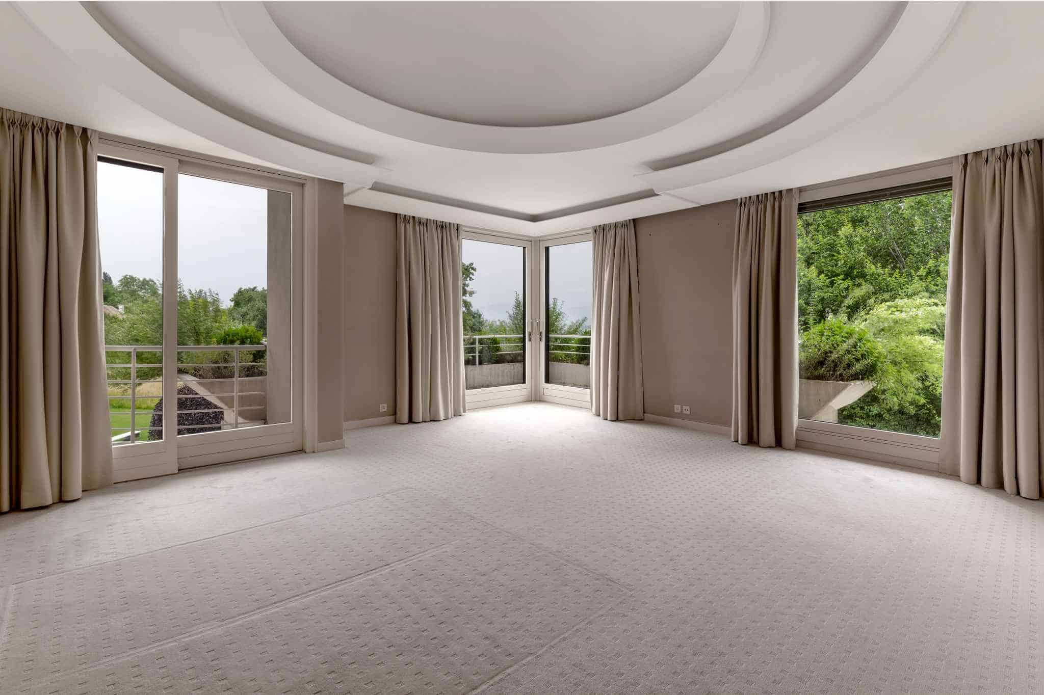 Distribuée sur deux niveaux hors-sols et un sous-sol totalisant une surface utile de plus de 1’100 m2, cette maison offre de magnifiques volumes et de vastes espaces éclairés par des puits de lumière naturelle permettant la mise en valeur de belles œuvres.