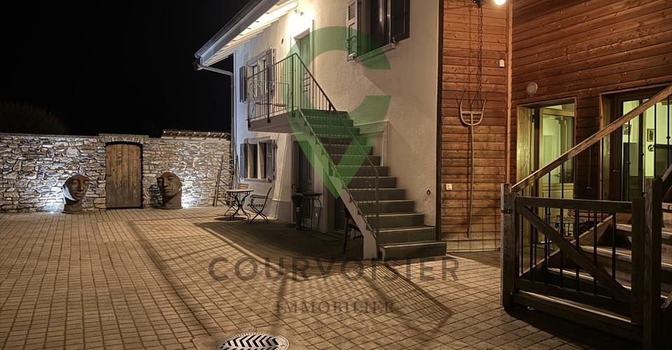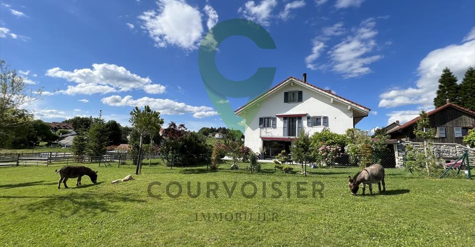 Maison de campagne d’exception à Servion – Un bien rare et unique ! Nichée au cœur d’un écrin de verdure, à l’abri des regards et en parfaite harmonie avec la nature, cette somptueuse propriété rénovée avec des matériaux de très haute qualité offre un confort de vie inégalé. Surplombant le village de Servion, elle jouit d’une orientation sud-ouest idéale, garantissant un ensoleillement généreux tout au long de la journée. Cette demeure de caractère se compose de trois unités d’habitation indépendantes, alliant charme authentique et prestations contemporaines : A) Logement principal de 9,5 pièces – environ 280 m² Spacieux et baigné de lumière, ce logement offre un accès direct au jardin, à une terrasse ainsi qu’à une charmante cour intérieure. Avec ses volumes généreux et son aménagement soigné, il constitue un cadre de vie chaleureux, idéal pour une famille. Il comprend 5 chambres, 4 salles de bains/douches et bénéficie d’une atmosphère élégante et conviviale. Il comprend aussi une chambre d’amis avec une salle de bains privative. B) Appartement en duplex de 3,5 pièces – environ 88 m² Aménagé dans l’ancienne grange, ce logement de 3,5 pièces réparties sur deux niveaux allie le cachet de l’ancien à des finitions modernes. Un lieu de vie confortable et plein de cachet. C) Chalet indépendant de 2,5 pièces + mezzanine d’environ 55 m² + rez inférieur de 55 m2 Situé de l’autre côté de la cour pavée, ce charmant chalet comprend une chambre, un salon, une cuisine équipée, une mezzanine ainsi qu’une terrasse privative. En rez-de-chaussée de ce chalet, une surface d’environ 64 m² est actuellement dédiée à des activités thérapeutiques avec des ânes, mais peut être adaptée à tout autre projet, par exemple : salle de gym, de yoga, de création, etc). Cette surface est équipée d’une salle de bains et d’une petite cuisine qui la rend indépendante des autres surfaces. Espaces extérieurs : Les espaces extérieurs sont tout aussi soignés avec sa cour intérieure entièrement pavée, son jardin plat bien arboré et exposé plein sud, et les vastes champs environnants contribuant à créer une atmosphère paisible et ressourçante. Actuellement les abris existants permettent d’accueillir des petits chevaux sans la nécessité de faire quoique ce soit comme construction supplémentaire. La propriété dispose de 5 places de parc double à l’entrée ainsi qu’un local à moto/vélo avec possibilité de stationnement supplémentaire dans la cour ou sous couvert. De plus, Servion dispose d’une école construite en 2022 au centre du village qui couvre toutes les années de la scolarité obligatoire. Le village est bien desservi en bus pour Lausanne ainsi que d’un commerce ouvert 7/7 et n’est qu’à 5 min de voiture de la zone commerciale d’Oron qui comporte un nid très dense de tous les commerces. Cette propriété rare constitue un véritable havre de paix pour les amoureux de nature et d’authenticité, à la recherche d’un bien d’exception. N’hésitez pas à nous contacter si vous avez besoin de plus amples informations ou désirez organiser une visite.