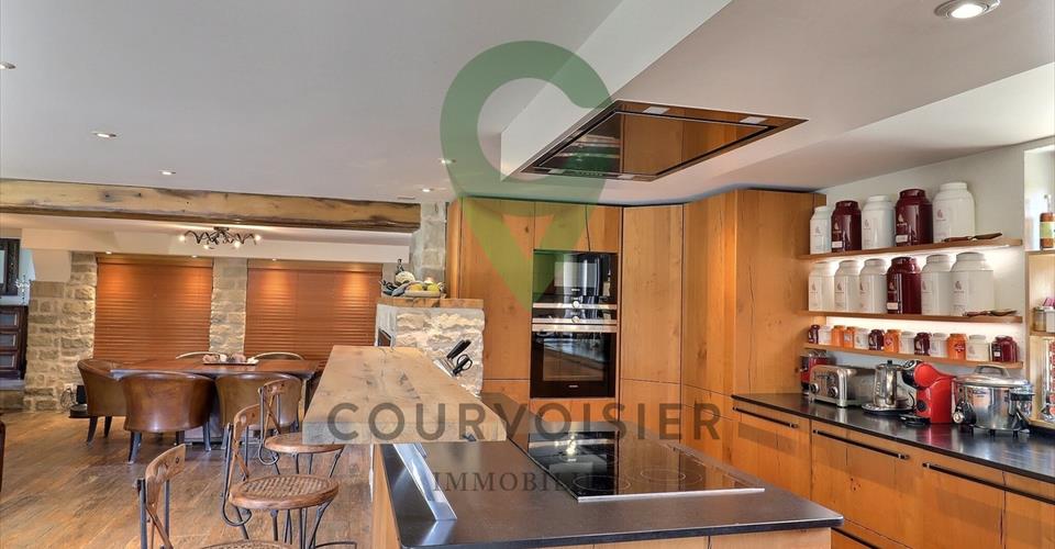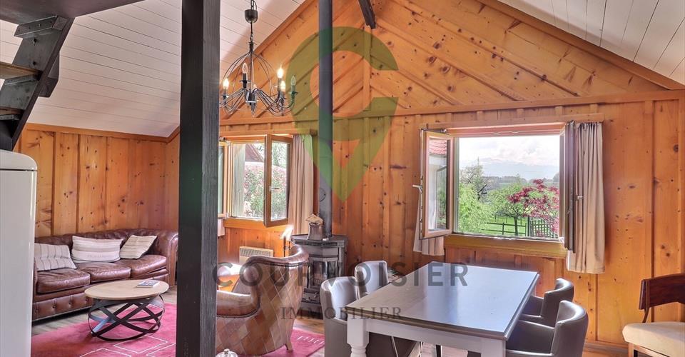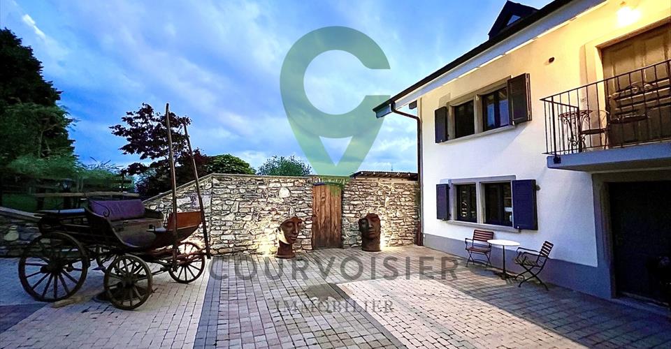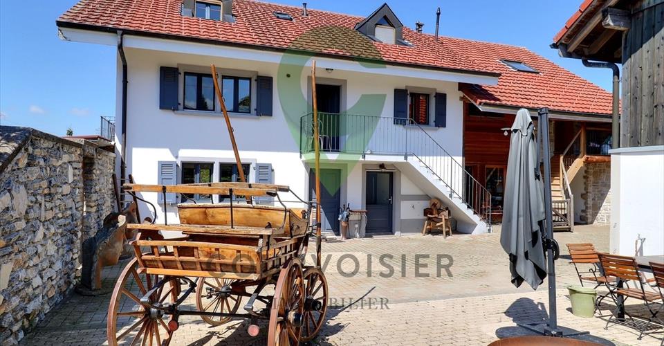 Maison de campagne d’exception à Servion – Un bien rare et unique ! Nichée au cœur d’un écrin de verdure, à l’abri des regards et en parfaite harmonie avec la nature, cette somptueuse propriété rénovée avec des matériaux de très haute qualité offre un confort de vie inégalé. Surplombant le village de Servion, elle jouit d’une orientation sud-ouest idéale, garantissant un ensoleillement généreux tout au long de la journée. Cette demeure de caractère se compose de trois unités d’habitation indépendantes, alliant charme authentique et prestations contemporaines : A) Logement principal de 9,5 pièces – environ 280 m² Spacieux et baigné de lumière, ce logement offre un accès direct au jardin, à une terrasse ainsi qu’à une charmante cour intérieure. Avec ses volumes généreux et son aménagement soigné, il constitue un cadre de vie chaleureux, idéal pour une famille. Il comprend 5 chambres, 4 salles de bains/douches et bénéficie d’une atmosphère élégante et conviviale. Il comprend aussi une chambre d’amis avec une salle de bains privative. B) Appartement en duplex de 3,5 pièces – environ 88 m² Aménagé dans l’ancienne grange, ce logement de 3,5 pièces réparties sur deux niveaux allie le cachet de l’ancien à des finitions modernes. Un lieu de vie confortable et plein de cachet. C) Chalet indépendant de 2,5 pièces + mezzanine d’environ 55 m² + rez inférieur de 55 m2 Situé de l’autre côté de la cour pavée, ce charmant chalet comprend une chambre, un salon, une cuisine équipée, une mezzanine ainsi qu’une terrasse privative. En rez-de-chaussée de ce chalet, une surface d’environ 64 m² est actuellement dédiée à des activités thérapeutiques avec des ânes, mais peut être adaptée à tout autre projet, par exemple : salle de gym, de yoga, de création, etc). Cette surface est équipée d’une salle de bains et d’une petite cuisine qui la rend indépendante des autres surfaces. Espaces extérieurs : Les espaces extérieurs sont tout aussi soignés avec sa cour intérieure entièrement pavée, son jardin plat bien arboré et exposé plein sud, et les vastes champs environnants contribuant à créer une atmosphère paisible et ressourçante. Actuellement les abris existants permettent d’accueillir des petits chevaux sans la nécessité de faire quoique ce soit comme construction supplémentaire. La propriété dispose de 5 places de parc double à l’entrée ainsi qu’un local à moto/vélo avec possibilité de stationnement supplémentaire dans la cour ou sous couvert. De plus, Servion dispose d’une école construite en 2022 au centre du village qui couvre toutes les années de la scolarité obligatoire. Le village est bien desservi en bus pour Lausanne ainsi que d’un commerce ouvert 7/7 et n’est qu’à 5 min de voiture de la zone commerciale d’Oron qui comporte un nid très dense de tous les commerces. Cette propriété rare constitue un véritable havre de paix pour les amoureux de nature et d’authenticité, à la recherche d’un bien d’exception. N’hésitez pas à nous contacter si vous avez besoin de plus amples informations ou désirez organiser une visite.