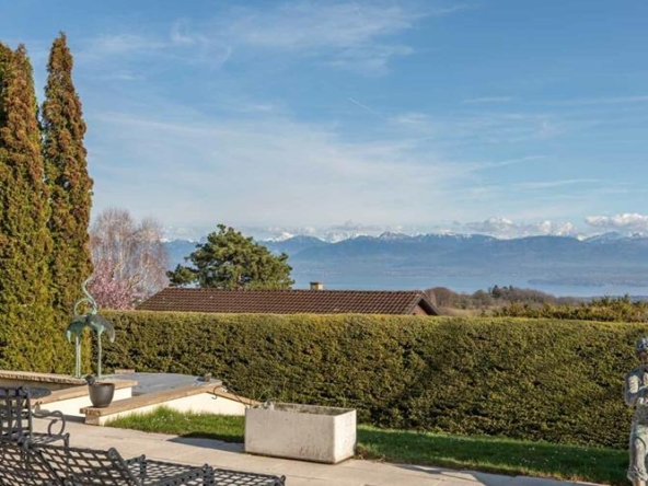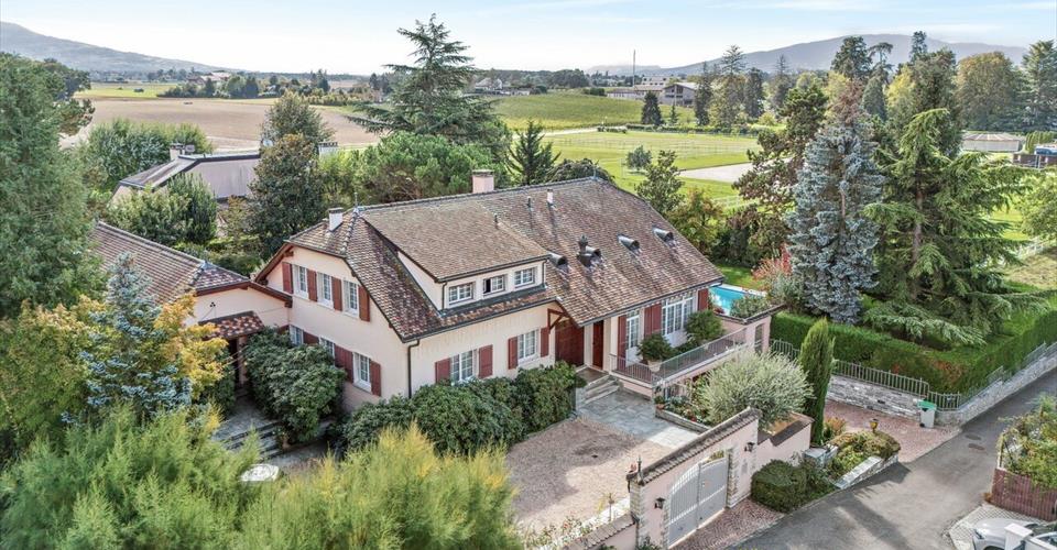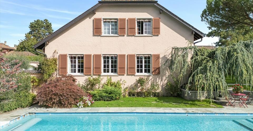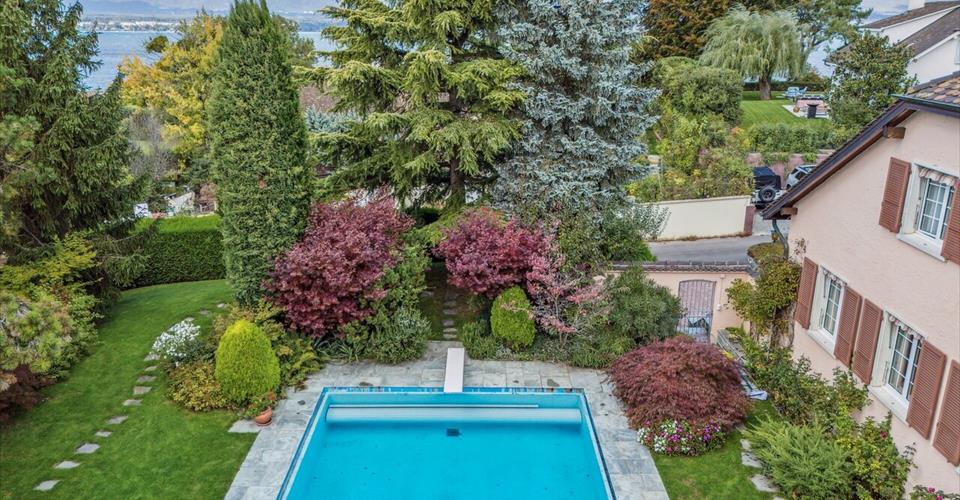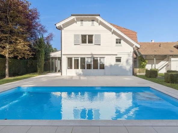 Propriété d’exception sur la commune d’Anières : Terrain arboré de 2635 m² Environnement résidentiel Maison genevoise d’environ 550 m² 8 chambres à coucher Une dépendance d’environ 100 m² Magnifique terrasse avec piscine