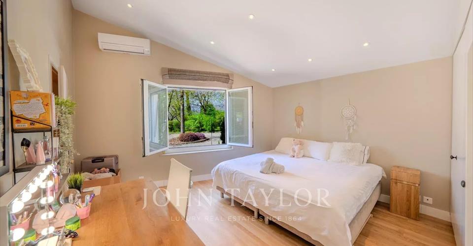 -Située dans l’un des quartiers les plus prisés de Lussy-sur-Morges, cette villa contemporaine inspirée de l’architecture américaine offre un cadre de vie exceptionnel. -D’une superficie de plus de 600 m² habitables, cette superbe propriété se distingue par ses volumes généreux et son design raffiné. -Construite en 1977 et entièrement rénovée avec des matériaux de haute qualité, elle a été entretenue avec un soin méticuleux depuis 2012 et jusqu’à aujourd’hui. -Édifiée sur une parcelle de plus de 9 500 m², la villa jouit d’un cadre de vie exceptionnel, à l’abri des regards. -Les espaces de vie, spacieux et lumineux, sont sublimés par de larges baies vitrées offrant plusieurs accès directs aux extérieurs. -Elle comprend 8 chambres et 7 salles d’eau, assurant un confort optimal pour toute la famille. -Les grandes terrasses qui entourent la villa sont idéales pour profiter pleinement des journées ensoleillées. -Vous serez également séduit par la magnifique piscine chauffée, parfaitement protégée des regards indiscrets. -À proximité, un pool house tout équipé avec cuisine, salle de douche et WC complète harmonieusement l’espace détente. -Enfin, un garage pouvant accueillir 2 véhicules, ainsi que plusieurs places de stationnement extérieures, viennent parfaire ce bien d’exception. À visiter sans plus tarder !