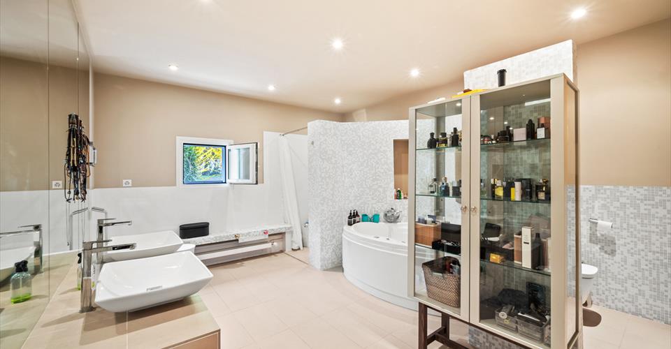 Découvrez cette somptueuse propriété d’architecte des années 70, rénovée en 2011, située dans un quartier privé et calme de Lussy-sur-Morges. Implantée sur un terrain de près d’un hectare, cette villa unique vous garantit une intimité totale, entourée de verdure et de champs agricoles. À l’extérieur, profitez d’un cadre idyllique avec une piscine chauffée entourée d’une grande terrasse, d’un pool house, d’un jacuzzi, ainsi que des vestiaires et WC pour un confort total. Les passionnés d’équitation apprécieront les deux boxes pour chevaux situés sur le terrain. D’une superficie de 600 m² de plain-pied, cette maison offre des volumes impressionnants et une luminosité incomparable grâce à ses nombreuses baies vitrées. Le vaste salon avec cheminée, la bibliothèque cosy, ainsi que le bureau avec mezzanine invitent à la détente et à la convivialité. La cuisine entièrement équipée et fonctionnelle est un véritable atout pour une vie de famille. La propriété totalise huit chambres à coucher toutes avec leurs salles de bains ensuite. Le sous-sol de la propriété comprend une buanderie, un local technique et de généreux espaces de rangement. Un garage double, avec au-dessus un studio indépendant, idéal pour le personnel ou les invités, complète ce bien d’exception. De nombreuses places de stationnement extérieures sont également à disposition. Située dans un cadre paisible et privilégié, cette propriété est un bien unique, à seulement quelques minutes des commodités et des transports.
