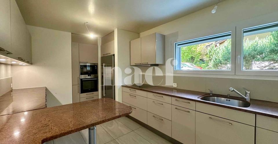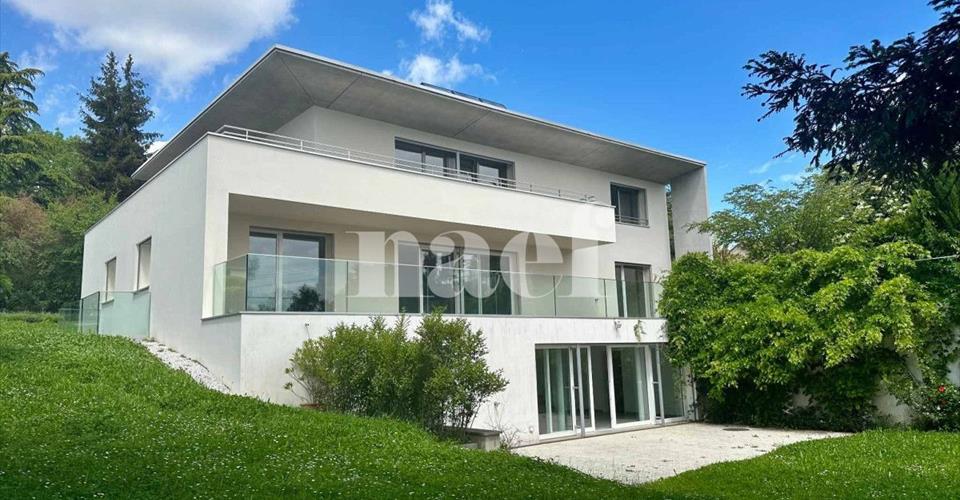 Située à Bellevue, à quelques minutes des organisations internationales et du bord du lac, de l’aéroport de Cointrin et du Palais des Nations, nous proposons une spacieuse villa individuelle. Construite récemment sur une parcelle de 2’176 m², elle offre une surface habitable d’environ 400 m², répartie sur trois étages, offrant des espaces de vie généreux pour le plus grand confort de ses occupants. A proximité immédiate de l’entrée de l’autoroute A1 et proche de l’école internationale du campus des Nations, de la “English school” et à moins de 10 minutes du Collège du Léman, elle se réparti comme suit: Le rez-de-chaussée comprend: un hall d’entrée avec armoires intégrées et WC visiteurs, un bureau et un spacieux et lumineux séjour/salle à manger, bénéficiant de grandes baies vitrées donnant accès à un généreux balcon. Une penderie. Une suite avec accès balcon comprenant une chambre à coucher avec armoires intégrées et une salle de douche/WC/bidet, attenante. Une cuisine entièrement agencée et équipée (four, lave vaisselle, frigo américain, micro-ondes, plaques vitrocéramiques et lave-vaisselle). Le premier étage offre trois suites, dont deux disposent chacune d’armoires intégrées et d’une salle de douche/WC attenante. La suite parentale comprend un dressing séparé et une salle de bains/douche/WC/bidet attenante. L’une des chambres ainsi que la suite parentale profitent de l’accès sur le généreux balcon de l’étage, offrant une belle vue sur les Alpes. Le rez-de-chaussée inférieur dispose de deux chambres avec, pour chacune, un accès extérieur indépendant et une salle de douche/WC attenante pour l’une, et une salle de bains/WC, pour la 2ème. Deux chambres supplémentaires se partagent une salle de douche/WC. Une 5ème chambre avec armoires intégrées, donnant sur la terrasse et le jardin, profite d’une salle de douche/WC attenante. Une kitchenette, agencée et équipée d’un petit frigo, d’un lave-vaisselle, de plaques à induction, est ouverte sur une spacieuse pièce de vie qui bénéficie de grandes baies vitrées permettant d’accéder à la terrasse et au jardin. Une buanderie équipée d’un lave-linge et d’un petit sauna, ainsi qu’un local technique et un abri PC, complètent le tout. Un garage double avec porte électrique et plusieurs places de parc extérieures son disponibles dans la cours de la maison. L’ensemble de la propriété est clôturé et accessible par un portail électrique.