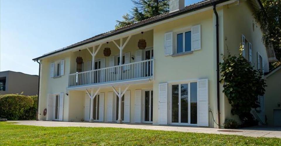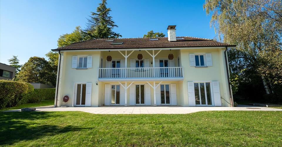 Découvrez cette propriété d’exception de 14 pièces, d’une surface de 420 m2, idéale pour les grandes familles ou les organisations internationales. Située dans un environnement privilégié. Dès votre entrée, vous serez séduit par un vaste séjour lumineux avec cheminée et une vue imprenable sur le Mont-Blanc. Une grande salle à manger séparée offre un espace idéal pour vos réceptions. La cuisine principale, moderne et séparée, dispose d’un coin repas convivial. Pour vos événements, une deuxième cuisine est aménagée en rez-de-jardin, parfaite pour les réceptions estivales. L’aile parentale se compose d’une chambre spacieuse avec dressing et d’une salle de bain privative équipée d’une douche et d’une baignoire. En rez-de-jardin, vous trouverez quatre autres chambres doubles, toutes avec des portes-fenêtres donnant sur la terrasse. Un deuxième séjour, également en rez-de-jardin, offre un espace de détente supplémentaire. La maison dispose de quatre salles de bain complètes récemment rénovées et de trois WC séparés. Le 3ème niveau aménagé de 120 m² propose trois pièces polyvalentes avec velux et deux WC, offrant un potentiel d’aménagement pour un bureau, une salle de jeux ou un espace de loisirs. Cette propriété est en parfait état. Les rénovations et les peintures intérieures ont été réalisées en 2025, et les peintures extérieures en 2020. Profitez d’un grand jardin de presque 2000 m2, Le stationnement est facilité par deux garages avec portes automatiques et deux places de parking supplémentaires. La cour intérieure peut accueillir plusieurs voitures. Un portail électrique avec télécommande assure votre intimité et votre sécurité. La maison est idéalement située, à proximité des écoles internationales et de l’accès à l’autoroute. Deux caves disponible pour le rangement et une buanderie équipée complètent ce bien unique. Cette propriété est parfaitement adaptée pour une grande famille de diplomates ou une organisation internationale souhaitant combiner résidence et bureaux au même endroit. Pour plus d’informations ou pour organiser une visite, veuillez contacter M. Timothy BENOIT à ou par téléphone Discover this exceptional 14-room property with a surface area of 420 m², ideal for large families or international organizations. Located in a privileged environment. As soon as you enter, you will be charmed by a large, bright living room with a fireplace and a breathtaking view of Mont Blanc. A large separate dining room offers an ideal space for your receptions. The modern, separate main kitchen has a convivial dining area. For your events, a second kitchen is located on the garden level, perfect for summer receptions. The master suite consists of a spacious bedroom with a dressing room and a private bathroom equipped with a shower and bathtub. On the garden level, you will find four other double bedrooms, all with French doors opening onto the terrace. A second living room, also on the garden level, offers additional relaxation space. The house has four recently renovated full bathrooms and three separate toilets. The third floor, measuring 120 m², offers three versatile rooms with skylights and two toilets, providing potential for conversion into an office, games room, or leisure area. This property is in perfect condition. Interior renovations and painting were carried out in 2025, and exterior painting in 2020. Enjoy a large garden of almost 2,000 m². Parking is easy with two garages with automatic doors and two additional parking spaces. The inner courtyard can accommodate several cars. An electric gate with remote control ensures your privacy and security. The house is ideally located, close to international schools and motorway access. Two cellars for storage and a fully equipped laundry room complete this unique property. This property is perfectly suited for a large diplomatic family or an international organization wishing to combine residence and offices in the same location. For more information or to arrange a visit, please contact Mr. Timothy BENOIT at or by phone at