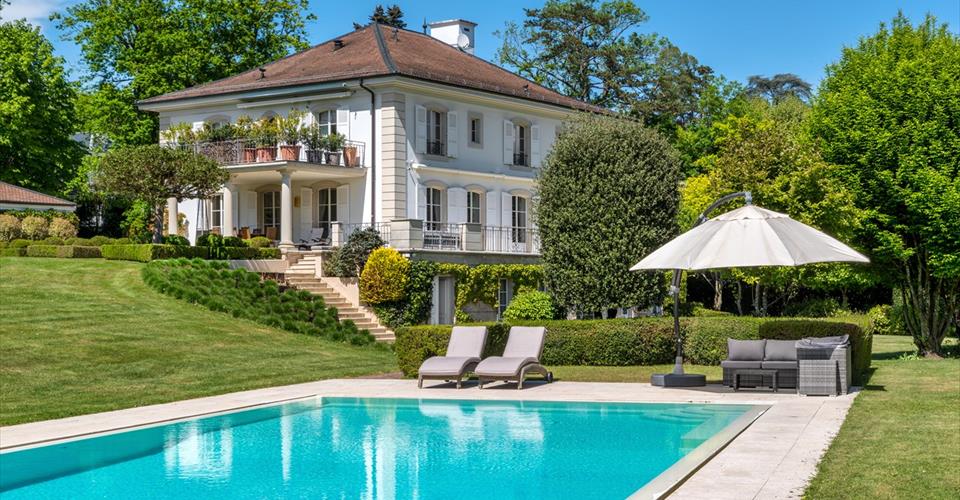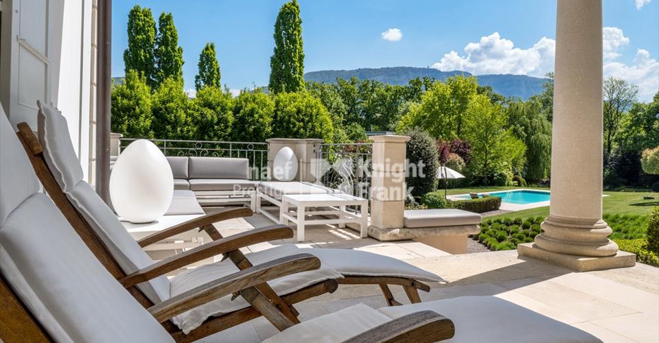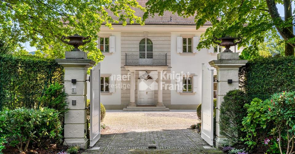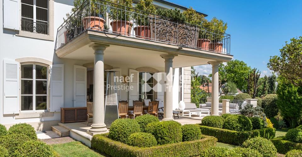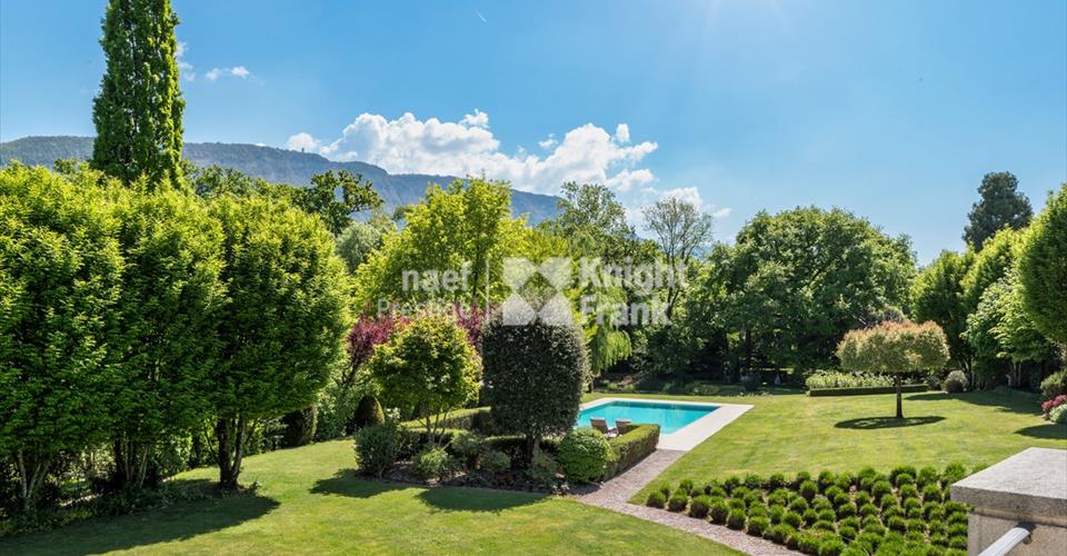Nichée au coeur du prestigieux quartier résidentiel de Conches, cette majestueuse propriété de maître vous offre un cadre de vie rare, alliant élégance, confort et tranquillité absolue. Implantée sur deux magnifiques parcelles totalisant 5’122 m², cette demeure profite d’un terrain dominant, parfaitement exposé, offrant une vue imprenable sur le Salève. Le jardin paysagé, véritable écrin de verdure, abrite des essences rares, un étang paisible et une grande piscine extérieure, créant une atmosphère idyllique. La maison principale, d’une surface habitable de 500 m² (620 m² utiles) avec en prime un grenier aménageable d’environ 150 m², a été construite selon des standards de qualité très élevés. Les finitions sont particulièrement soignées, et chaque pièce de vie bénéficie de volumes généreux et d’un accès à des terrasses ou balcons répartis sur les trois niveaux. Le bien est situé dans un environnement résidentiel prisé, entouré de villas et de propriétés de maître, à proximité immédiate des écoles privées renommées, des transports publics genevois (TPG), du centre-ville et de toutes les commodités. Un vaste garage permet d’accueillir jusqu’à quatre véhicules, complété par de nombreuses places de stationnement extérieures et une cour principale accueillante. La propriété offre par ailleurs un fort potentiel d’évolution : un agrandissement ou un morcellement du terrain est envisageable pour une nouvelle construction, avec un accès indépendant par le chemin.