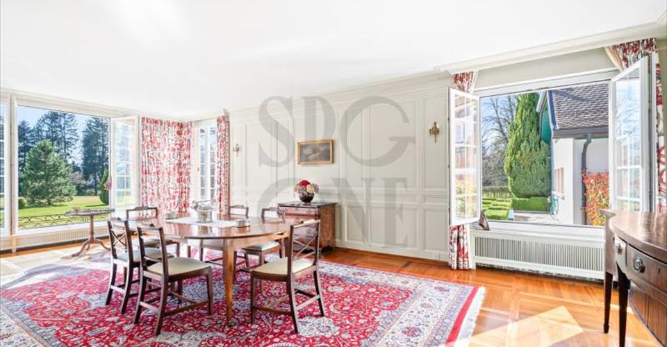 Nichée dans un véritable havre de paix, cette somptueuse propriété de maître se situe aux portes du prestigieux Golf de Lausanne. Alliant charme intemporel, volumes généreux et prestations de qualité, elle offre un cadre de vie exceptionnel, à seulement quelques minutes du centre-ville et des commodités (commerces, restaurants, transports, manège, Ecole hôtelière de Lausanne). Érigée en 1958, cette demeure était à l’origine une petite maison, rapidement transformée en une magnifique propriété de maître construite dans les règles de l’art, avec des matériaux d’excellente qualité. Les dernières transformations majeures datent de 2016, et depuis sa création, la maison a été entretenue avec le plus grand soin. Elle se présente aujourd’hui dans un état irréprochable, aussi bien à l’intérieur qu’à l’extérieur. Le volume total des deux habitations atteint 4’657 m³, offrant des espaces de vie remarquables, baignés de lumière naturelle. La hauteur sous plafond, supérieure à quatre mètres, confère à chaque pièce une atmosphère majestueuse et une sensation d’espace rare. La maison principale comprend plus de douze pièces, dont cinq chambres à coucher. Quatre d’entre elles disposent de leur propre salle de bains, garantissant un confort optimal pour les résidents comme pour les invités. La répartition des espaces a été pensée avec soin : on y trouve notamment plusieurs bureaux, une salle de billard, un office, ainsi que d’autres pièces annexes qui renforcent la polyvalence et le standing de l’ensemble. Attenante à la maison principale, l’annexe a été aménagée de manière fonctionnelle et discrète. Elle comprend deux appartements indépendants composés chacun d’un salon, une chambre, cuisine, salle de bains. A cela s’ajoutent une buanderie, un atelier et un vaste garage fermé pouvant accueillir jusqu’à quatre véhicules, équipé de portes électriques. L’ensemble de la propriété s’étend sur un terrain de 8’000 m², magnifiquement arboré, offrant un cadre de vie unique dans un environnement calme et préservé. Les aménagements extérieurs, soignés et élégants, invitent à la détente et s’intègrent parfaitement au paysage. La proximité immédiate avec le Golf de Lausanne vient parfaire ce tableau d’exception. Rares sont les propriétés qui réunissent autant de qualités: une localisation privilégiée, un terrain de grande dimension, une architecture pensée avec exigence, des volumes impressionnants et des finitions de haut niveau. Cette demeure incarne avec justesse le raffinement, l’intimité et le confort d’une vie élégante aux portes de Lausanne.