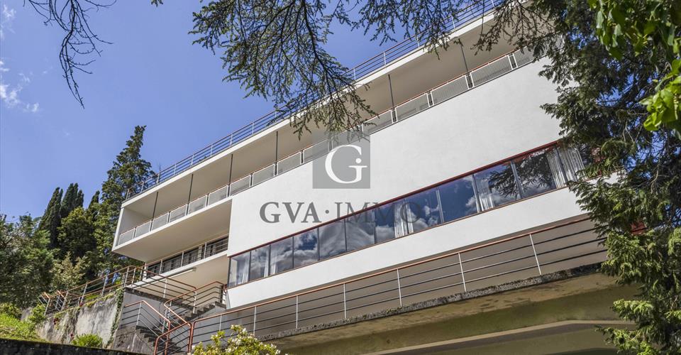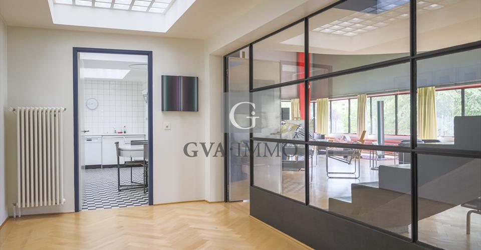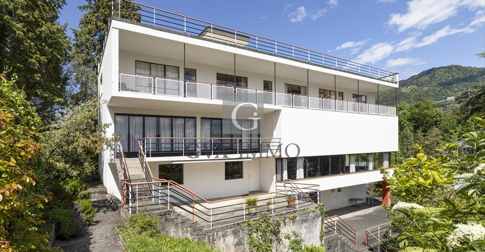 Construite en 1931 par les architectes Alexandre Ferenczy et Hermann Henselmann sur les bords du Lac Léman, la Villa Kenwin constitue un témoignage marquant du mouvement Bauhaus en Suisse. Cette villa a fait l’objet d’une rénovation exemplaire en 1987, qui lui a rendu toute sa splendeur d’origine et lui a valu son inscription en tant que bien culturel suisse d’importance nationale. Au sein d’un parc paysager de 5 241 m² surplombant la Riviera vaudoise, la Villa développe une surface habitable de 550 m² répartie sur quatre niveaux. Elle est surmontée d’un superbe toit-terrasse offrant une vue spectaculaire sur le lac Léman et le panorama montagneux. Une courte allée traverse un verger et mène à l’entrée principale, qui arbore un nuancier de bleu annonçant le parti pris polychrome du site. Ce premier niveau ou rez-de-chaussée inférieur accueille les pièces de service. Au rez-de-chaussée supérieur, un hall lumineux distribue une cuisine éclairée par une verrière zénithale et le séjour accessible par une porte métallique. L’espace de réception se déploie sur 150 m² sous 5 mètres de hauteur sous plafond et est surplombé par un balcon intérieur en mezzanine aux lignes courbes, bordé par d’élégants garde-corps métalliques. L’éclairage naturel de la pièce est assuré par une grande baie vitrée horizontale de 15 mètres de long cadrant la vue sur le lac et le paysage. Sous le balcon, une verrière découvre une bibliothèque. A l’étage, on accède à une chambre de travail utilisée également comme espace de projection. Au dernier étage, l’espace nuit accueille 6 chambres et 3 salles de bain distribuées le long d’un couloir en U comme les cabines d’un bateau. Les pièces présentent un décor minimaliste à l’esthétique moderniste : fauteuils inspirés des réalisations de Charlotte Perriand, meubles fonctionnels et appliques caractéristiques du style Bauhaus. Elle profite d’un emplacement idyllique sur les bords du Lac Léman, face aux Préalpes, entre Montreux et Vevey et surplombe un paysage exceptionnel de montagnes, de vignobles, de vieux bourgs et de réalisations illustres du mouvement moderne, telle la célèbre villa Karma d’Adolphe Loos, un exemple typique de l’architecture du «Neues Bauen» Bien présenté par Architecture de Collection (Agence française spécialisée sur l’architecture remarquable) en partenariat exclusif sur la Suisse romande avec GVA-IMMO SA Lien pour accéder au descriptif complet: https://www.architecturedecollection.fr/produit/villa-kenwin-alexandre-ferenczy-et-hermann-henselmann-architectes-bauhaus-1931-suisse/
