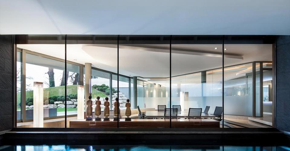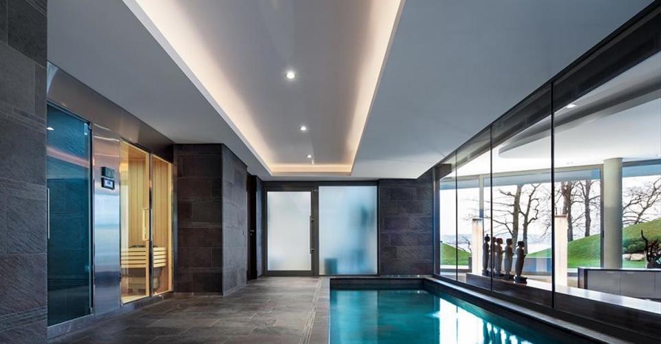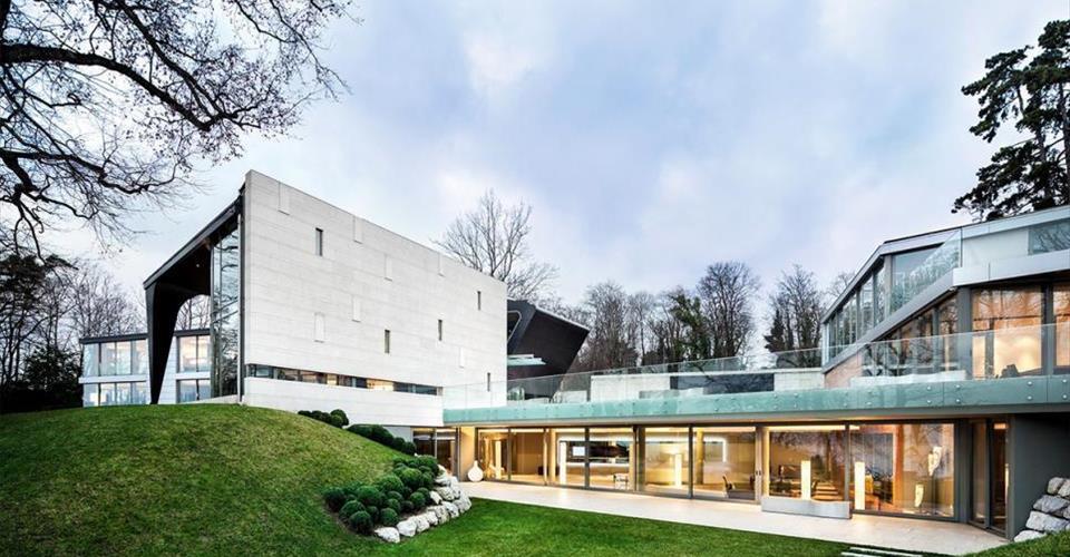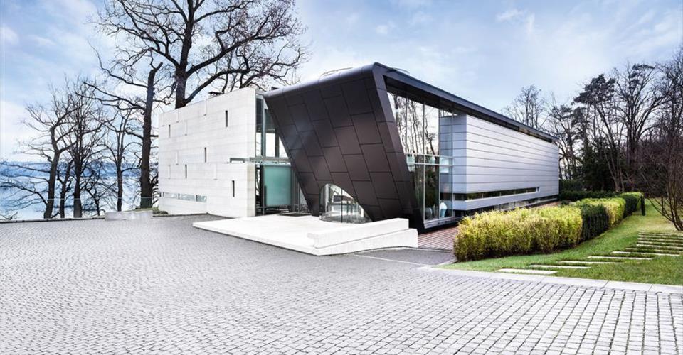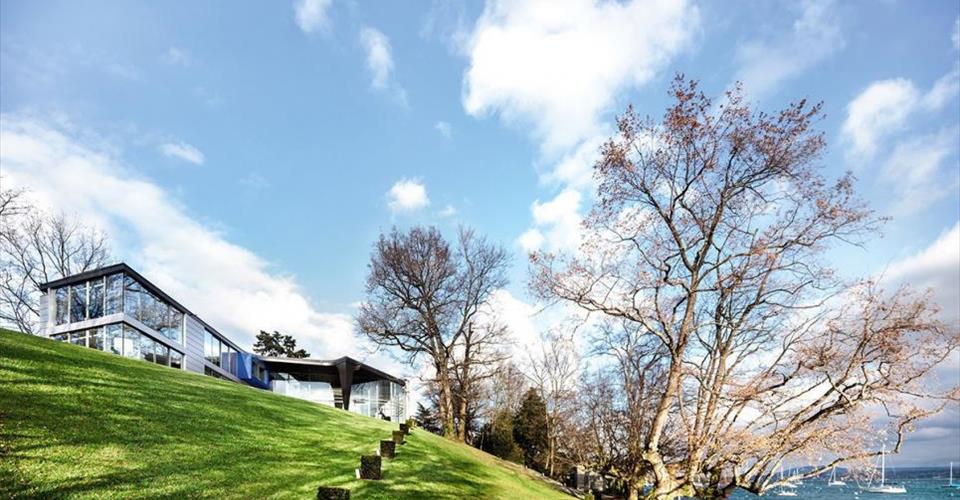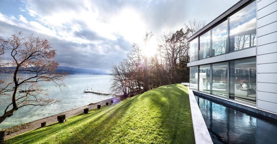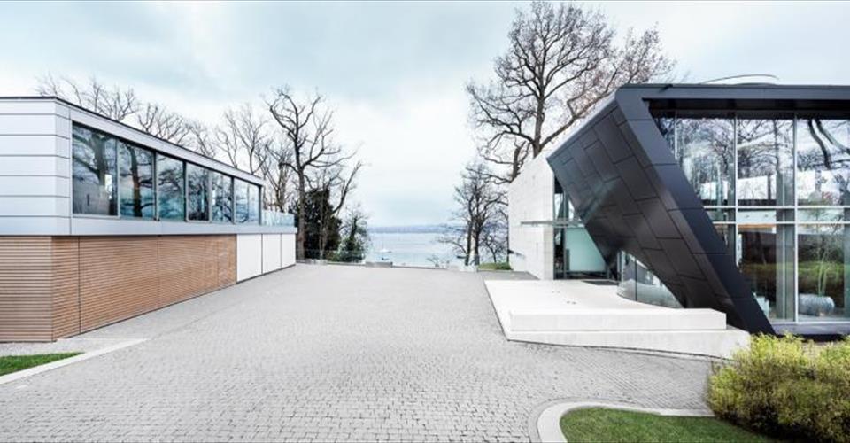 Jouissant d’un emplacement exceptionnel sur les rives du lac Léman, proche des organisations internationales et de l’aéroport, cette propriété aux lignes sculpturales et puissantes dispose d’une surface de 1’772m2 répartie dans un bâtiment principal, d’ une annexe et d’un modeste bâtiment classé. Ce remarquable ensemble aux bords arrondis et aux lignes triangulaires arbore une architecture imposante et contemporaine qui mise sur la transparence pour dévoiler l’extraordinaire vue sur le Mont Blanc et le lac. Dans l’édifice principal le vaste hall d’entrée distribue les spectaculaires pièces de réception. Celles-ci sont composées d’un salon aux impressionnantes hauteurs sous plafond, d’une salle à manger, d’une superbe cuisine équipée et d’un second salon familial, le tout prolongé par une grande terrasse qui domine le lac. Le premier étage accueille l’espace nuit. Il se compose de la splendide suite parentale avec son généreux dressing et sa salle de bain attenante, ainsi que de deux chambres, chacune avec sa salle de bain ensuite et son dressing. Toutes ces pièces offrent une vue imprenable sur le lac. Le rez-de-chaussée inférieur dispose en autre d’un splendide spa avec piscine intérieure, d’un sauna, d’un Hammam, d’une salle de conférence et d’une chambre avec salle de bain. Un garage pouvant accueillir une quinzaine de voitures se trouve également à cet étage. Tous les étages sont reliés par un superbe escalier au design épuré, ainsi que par un ascenseur en verre. L’annexe est composée d’ un appartement et de bureaux. A l’extérieur, un superbe parc de 6’000m2 , avec piscine et terrasses, offre d’agréables espaces de détente supplémentaires , qui donnent directement sur les rives du lac.