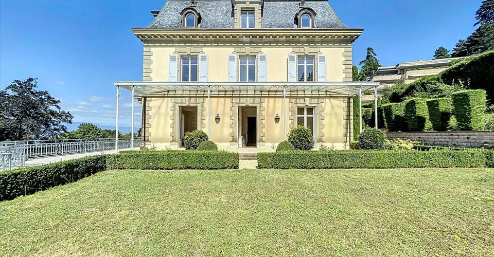 Située sur le prestigieux Quai de Cologny, connu pour ses résidences de haut standing, cette magnifique propriété de maître offre une vue imprenable sur le lac, le Jet d’eau et le Jura. Érigée en 1919 et récemment rénovée, la demeure préserve de superbes éléments d’époque, alliant ainsi l’élégance intemporelle au charme authentique. S’étendant sur quatre étages, la propriété est équipée d’un ascenseur facilitant l’accès à chaque niveau. Le rez-de-chaussée se distingue par trois spacieuses pièces de réception, une cuisine professionnelle, ainsi qu’une vaste terrasse offrant une vue panoramique à couper le souffle. Les deux étages supérieurs abritent l’espace nuit, comprenant neuf chambres à coucher, chacune avec sa propre salle de bain privative. Le sous-sol peut être aménagé pour accueillir du personnel de maison ou transformé en un espace bien-être avec spa et salle de sport. Un grand garage complète également cet espace. En plus de la villa principale, la propriété bénéficie d’une piscine, un pool house, un jardin agrémenté d’arbres centenaires, ainsi qu’une maison de gardien située à l’entrée de la propriété. Les frais d’entretien et les charges sont à prévoir en supplément du loyer.