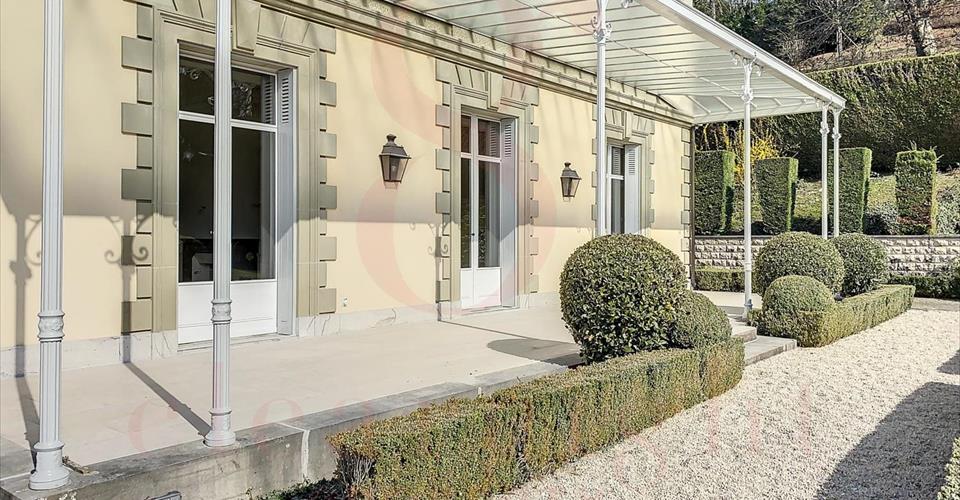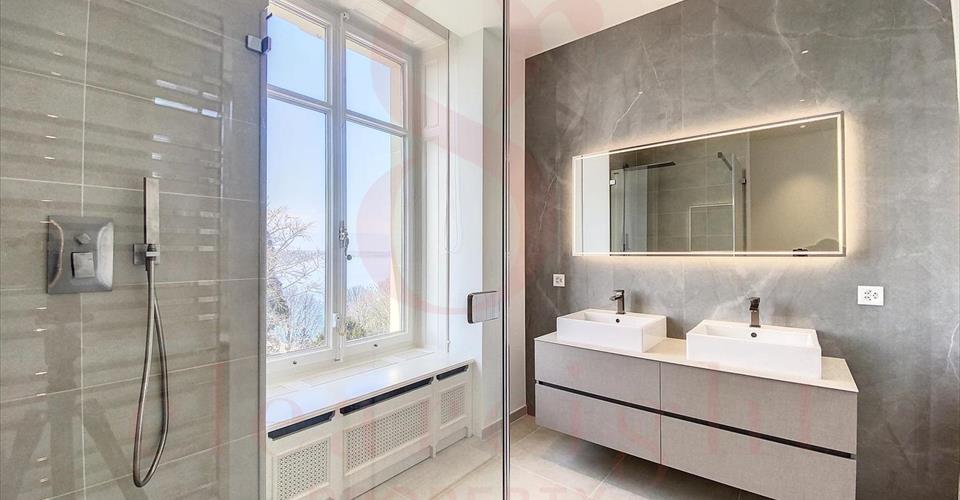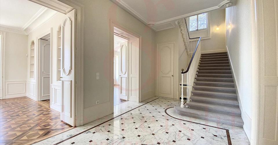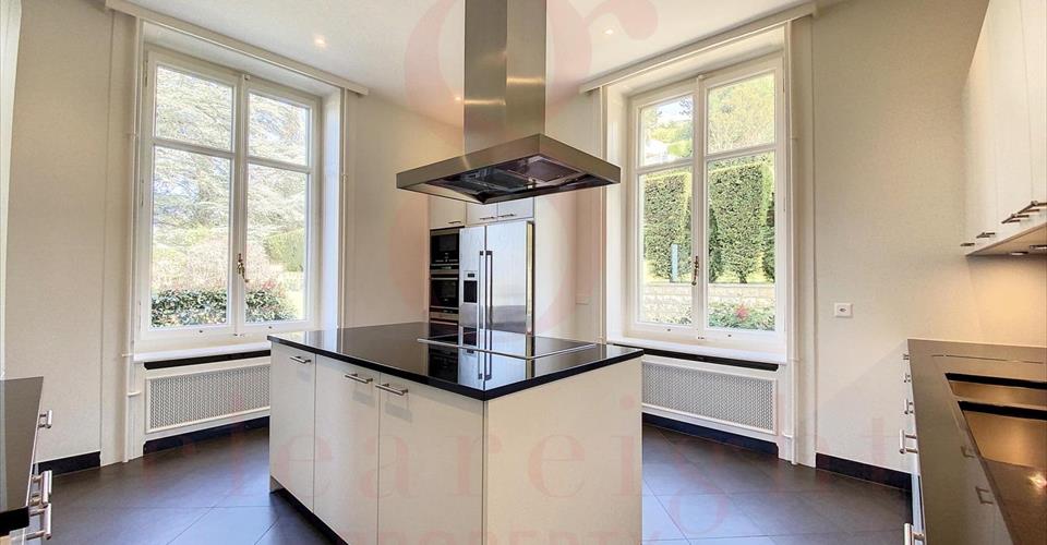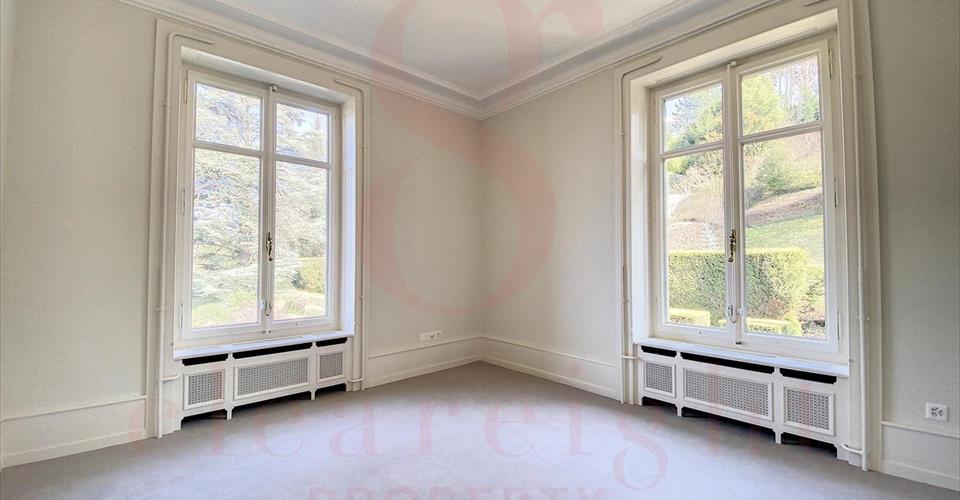 Située sur le très prestigieux Quai de Cologny, lieu de villégiature des résidences de haut standing, cette superbe propriété de maître offre une vue exceptionnelle sur le lac, le Jet d’eau et le Jura. Érigée en 1919, mais ayant fait l’objet d’une récente rénovation, la demeure comporte de beaux éléments d’époque, conservant ainsi une élégance d’un autre temps et un cachet des plus authentiques. Édifiée sur quatre étages, un ascenseur permet de relier les différents niveaux plus aisément. Le rez-de-chaussée propose 3 belles et spacieuses pièces de réception, une cuisine professionnelle et une large terrasse avec vue panoramique à couper le souffle. Les deux étages supérieurs desservent la partie nuit avec ses 8 chambres à coucher, toutes disposant de leur salle de bain privative. Le sous-sol permettrait d’héberger du personnel de maison et d’aménager un espace bien-être avec spa et salle de sport. Un grand garage complète l’espace sous-sol. Outre la villa de maître, la parcelle comprend également une piscine, un pool house, un jardin aux arbres centenaires et une maison de gardien à l’entrée de la propriété. Une affectation commerciale est également possible.