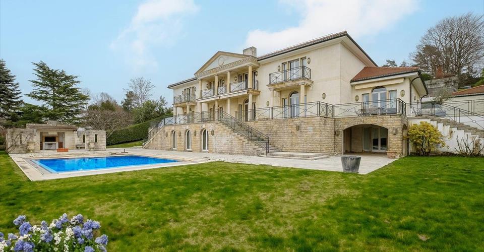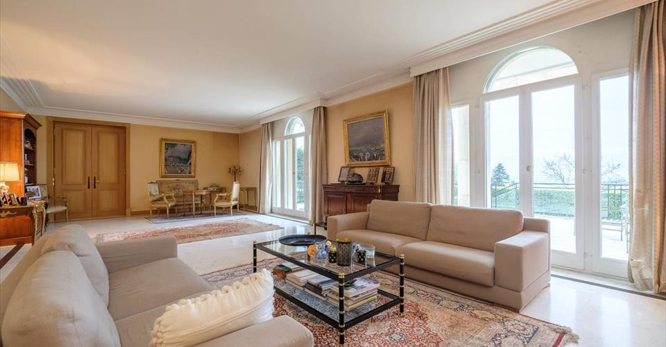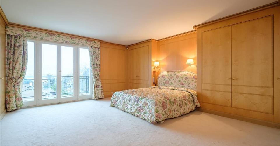 Cette vaste demeure est idéalement implantée sur une belle parcelle de plus de 3’000 m², dans un quartier résidentiel privilégié au calme, avec vue sur le lac. Construite en 1984, et actuellement divisée en deux logements, en miroir, la propriété est dotée de magnifiques volumes et de très belles hauteurs sous plafond. Elle offre environ 960 m² habitables et 1’440 m² utiles, répartis sur 3 niveaux. Les deux logements, pouvant être réunis, totalisent 9 chambres et 9 salles de bains. Elle bénéficie, entre autres, de généreux espaces de vie mais aussi d’un logement pour le personnel avec kitchenette et accès indépendant depuis l’extérieur, d’une salle de sport, et d’un spa avec sauna, hammam et jacuzzi. La maison profite d’un jardin clôturé, à l’abri des regards. Les extérieurs offrent également une piscine chauffée, deux grandes terrasses, un espace barbecue, un portail électrique ainsi qu’une vaste cour goudronnée chauffante. Trois garages extérieurs et de nombreuses places de parc dans la cour viennent parfaire l’ensemble. Les matériaux d’origine sont de belle qualité (marbre, pierres, boiseries). Cependant, des travaux de rénovation importants sont à prévoir.