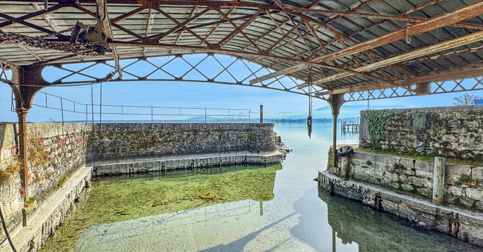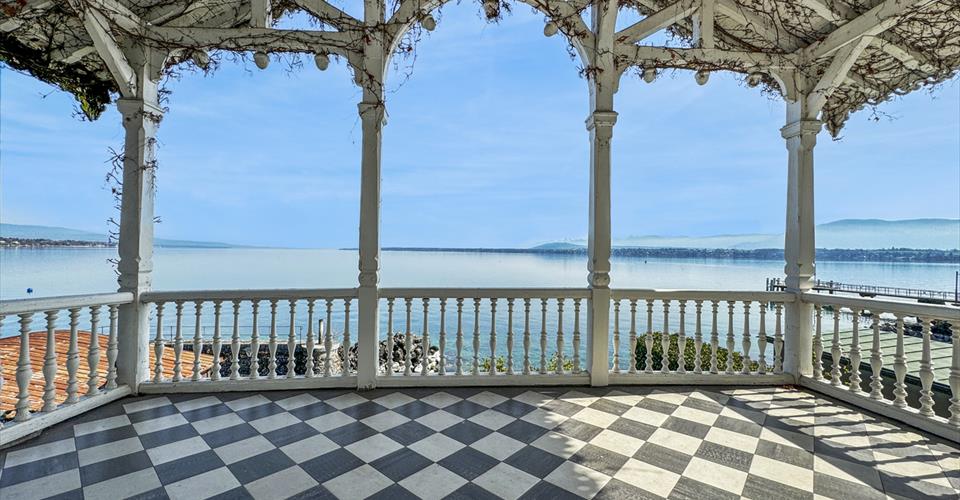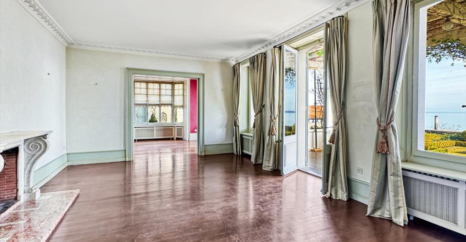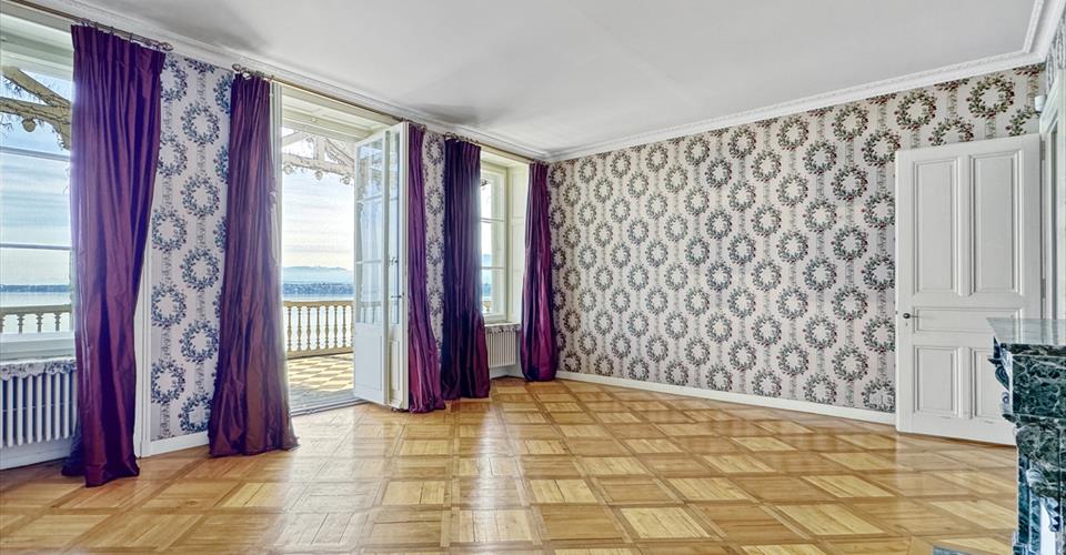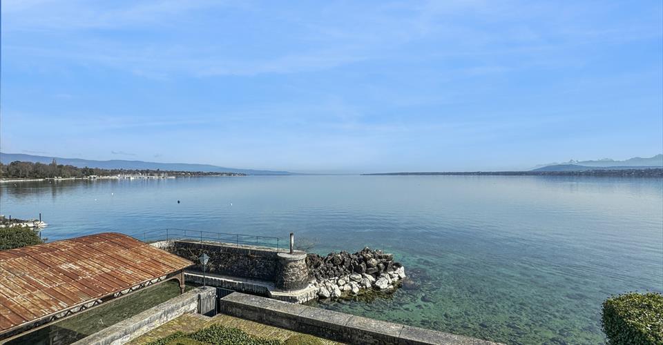 Situé à Versoix, sur une parcelle de 740 m2 bordant le Léman, cette demeure « pieds dans l’eau » datant du 19ème siècle allie charme, romantisme, intimité et vue panoramique sur le lac et les Alpes. Il se compose d’un bâtiment principal, de deux dépendances avec logements et d’un port privé couvert. La maison, d’une surface habitable de 500 m2 répartie sur trois étages, se décline de la façon suivante: Au rez-de-chaussée, le vestibule donnant sur le hall principal avec vestiaire et un majestueux escalier desservant le premier étage. Côté lac, avec accès à la terrasse couverte, trois pièces en enfilade, un petit-salon, un grand salon avec cheminée, plafonds moulurés et une bibliothèque. Une cuisine avec porte de service sur la cour intérieure, des toilettes visiteurs, une salle de douche avec toilettes, un cellier et une lingerie buanderie complètent ce niveau. Au premier étage, une élégante bibliothèque semi-hexagonale avec vue sur la cour, quatre chambres, dont une avec cheminée, vue sur le lac et accès à la terrasse couverte et trois salles de bains avec toilettes. Au deuxième étage, dans les combles réaménagés offrant une vue directe sur le lac, un appartement de 3 pièces avec salon, cuisine, chambre et salle de bains complète, ainsi que deux greniers. La première dépendance, de 130 m2 habitables, se distribue sur 3 niveaux et offre un salon – arcade donnant sur la route suisse et permettant si besoin une activité commerciale indépendante – une cuisine agencée, trois chambres à l’étage dont une avec vue lac et une salle de bains complète. Au sous-sol, une grande cave. La seconde dépendance se compose d’un deux-pièces de 30 m2 avec vestiaire et cuisine, chambre en mezzanine avec vue lac et une salle de bains avec toilettes. Un jardin à la française, une élégante cour pavée, un spacieux port privé couvert et protégé par une jetée ainsi qu’un garage avec local technique complètent ce bien rare, charmant et bucolique, véritable “coup de coeur”. Une remise au goût du jour complète est à prévoir.