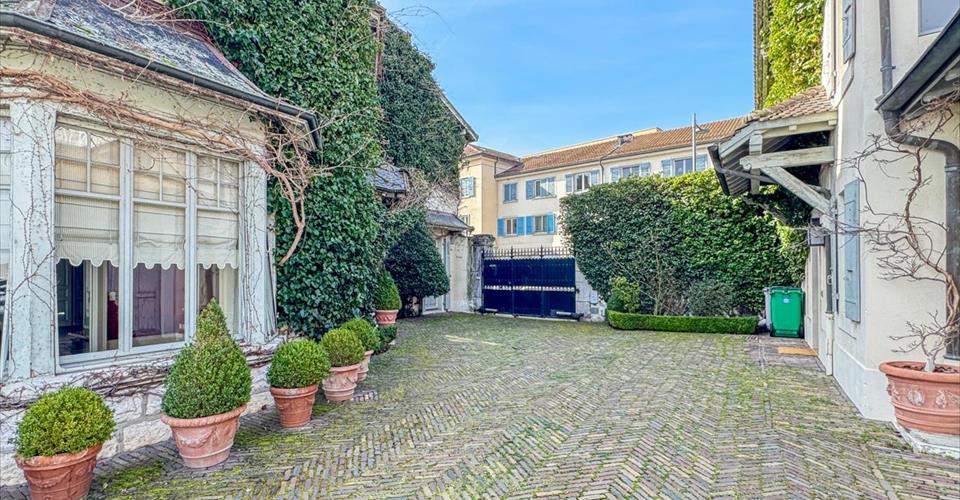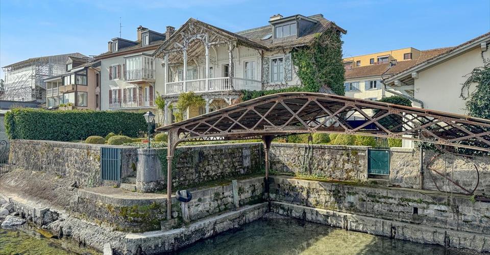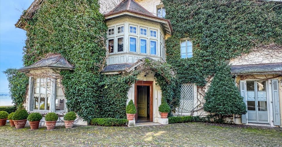 Co-exclusivité: Maison de charme pieds dans l’eau, avec port privé. Situé à Versoix, sur une parcelle de 740 m2 bordant le Léman, cette demeure « pieds dans l’eau » datant du 19ème siècle allie charme, romantisme, intimité et vue panoramique sur le lac et les Alpes. Il se compose d’un bâtiment principal, de deux dépendances avec logements et d’un port privé couvert. La maison, d’une surface habitable de 500 m2 répartie sur trois étages, se décline de la façon suivante: Au rez-de-chaussée, le vestibule donnant sur le hall principal avec vestiaire et un majestueux escalier desservant le premier étage. Côté lac, avec accès à la terrasse couverte, trois pièces en enfilade, un petit-salon, un grand salon avec cheminée, plafonds moulurés et une bibliothèque. Une cuisine avec porte de service sur la cour intérieure, des toilettes visiteurs, une salle de douche avec toilettes, un cellier et une lingerie buanderie complètent ce niveau. Au premier étage, une élégante bibliothèque semi-hexagonale avec vue sur la cour, quatre chambres, dont une avec cheminée, vue sur le lac et accès à la terrasse couverte et trois salles de bains avec toilettes. Au deuxième étage, dans les combles réaménagés offrant une vue directe sur le lac, un appartement de 3 pièces avec salon, cuisine, chambre et salle de bains complète, ainsi que deux greniers. La première dépendance, de 130 m2 habitables, se distribue sur 3 niveaux et offre un salon ? arcade donnant sur la route suisse et permettant si besoin une activité commerciale indépendante ? une cuisine agencée, trois chambres à l’étage dont une avec vue lac et une salle de bains complète. Au sous-sol, une grande cave. La seconde dépendance se compose d’un deux-pièces de 30 m2 avec vestiaire et cuisine, chambre en mezzanine avec vue lac et une salle de bains avec toilettes. Un jardin à la française, une élégante cour pavée, un spacieux port privé couvert et protégé par une jetée ainsi qu’un garage avec local technique complètent ce bien rare, charmant et bucolique, véritable “coup de coeur”. Une remise au goût du jour complète est à prévoir. Visites possibles tous les jours, samedi et dimanche inclus.