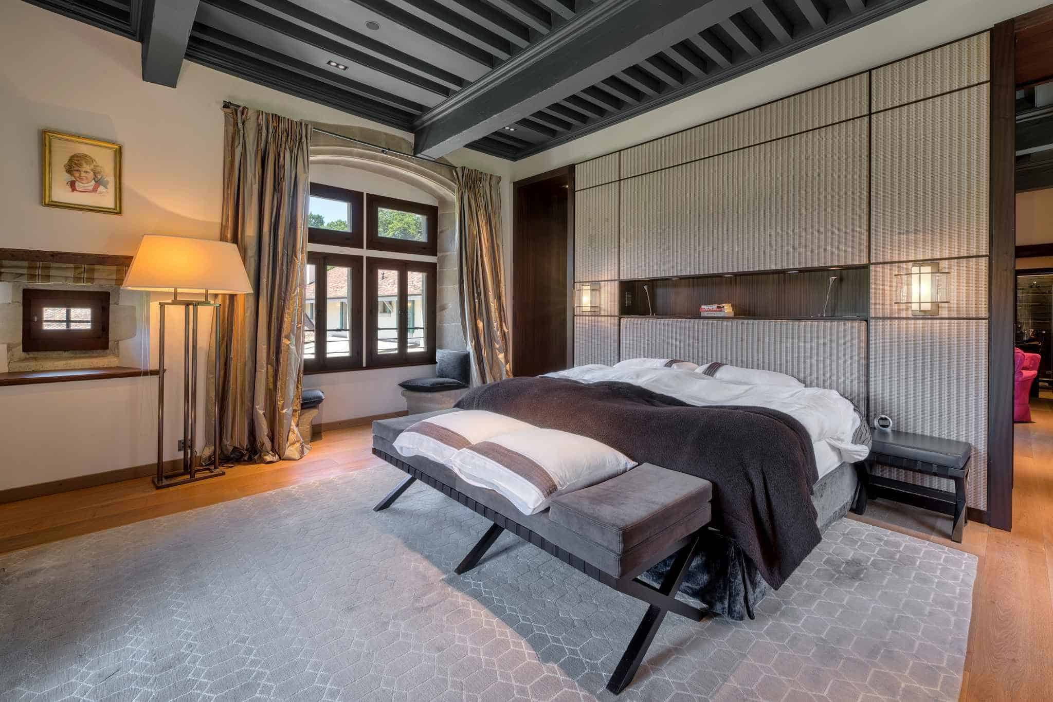 Orientée plein sud, la propriété allie modernité et authenticité. Elle comprend de nombreuses pièces de réception reliées par une splendide verrière, le tout desservi par un ascenseur. La partie nuit dispose de 7 chambres à coucher ainsi que d’un espace parental comprenant une spacieuse suite, deux dressings et deux salles de bains.