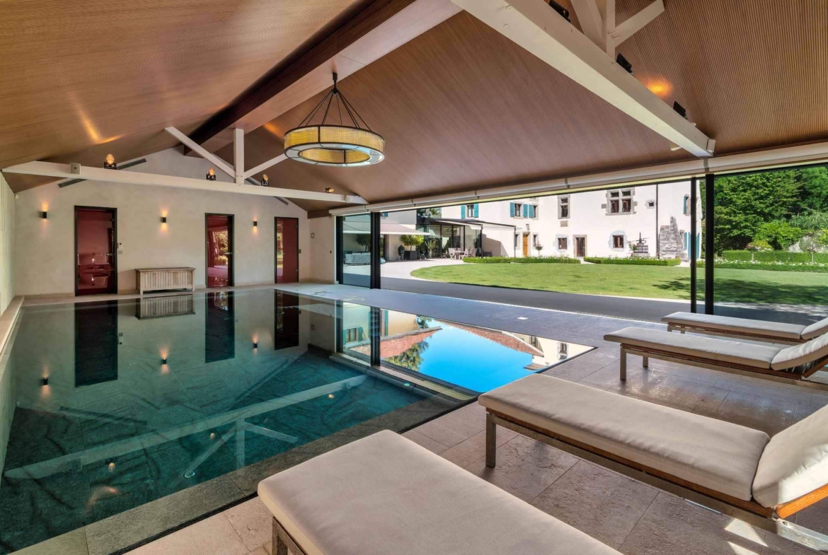 Vous serez transportés par l’ancienne écurie reconvertie en piscine intérieure ainsi que par le magnifique jardin d’une surface d’environ 4’400 m2, permettant de préserver le calme et l’intimité de la propriété.