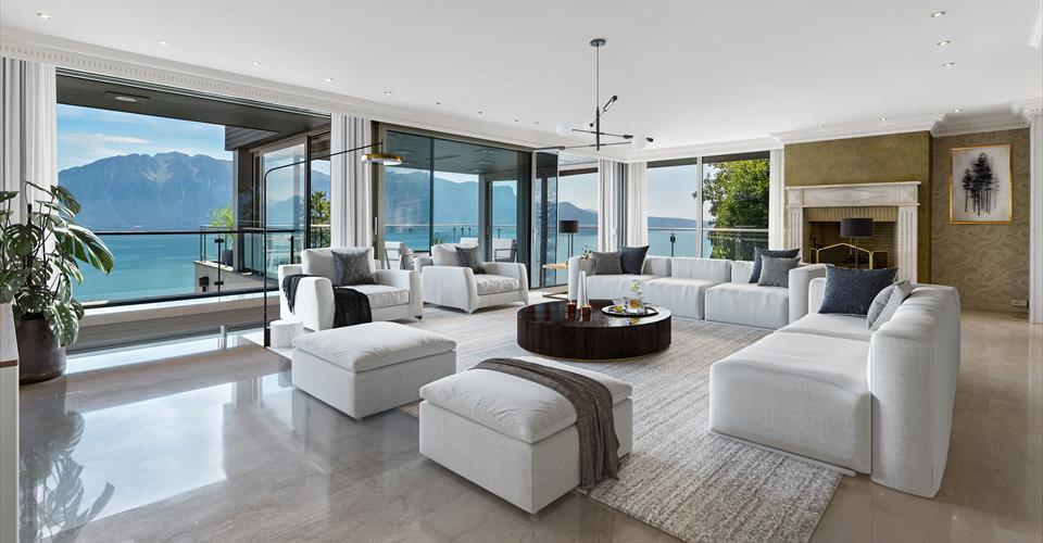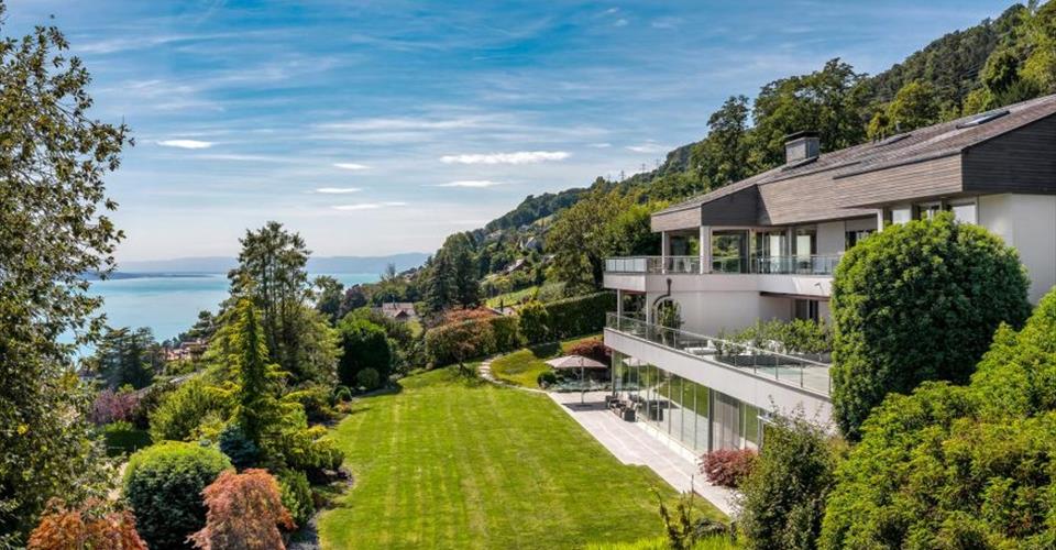 Cette villa contemporaine exceptionnelle est située à quelques minutes de Vevey, au cœur du vignoble de Lavaux, patrimoine mondial de l’UNESCO, avec un superbe panorama dans un cadre verdoyant et discret tout en étant proche des commodités. Véritable “balcon du Léman”, elle offre depuis toutes ses pièces une splendide vue panoramique sur le lac Léman et Les Alpes. Dotée de très généreux volumes baignés de lumière, cette propriété dispose de plus de 20 pièces dont 8 chambres pour une surface totale de près de 1’260 m² répartis sur quatre niveaux qui profitent de fantastiques terrasses totalisant 270 m². Sa belle parcelle paysagée d’environ 4’400 m², ensoleillée toute la journée, saura vous séduire avec ses plantations soignées, sa vaste terrasse, son charmant étang japonais et son aire de jeux pour enfants. Une grande piscine couverte et un espace spa situés au rez-de-jardin de la propriété viennent parfaire les lieux.