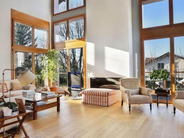 Cette villa contemporaine, située à Chêne-Bougeries, est implantée sur un terrain de plus 2 000 m² et bénéficie d’une arborisation remarquable. Offrant environ 780 m² de surface à usage répartis sur deux niveaux, toute l’élégance et le confort grâce à ses 11 pièces baignées de lumière naturelle et ses prestations haut de gamme, telles qu’un sauna/hammam, une cave à vin, et une salle polyvalente. . Un studio indépendant et des chambres pour personnel complet avec des propriétés idéales pour les plus exigeants. Son jardin avec piscine à débordement et pool house constitue une invitation à la détente et au raffinement. Sous-sol: ? Une belle pièce polyvalente ? Une cave à vin ? Un sauna/hammam ? Un studio indépendant avec cuisine ? 2 chambres avec canapé ? Une chambre avec invitations et une salle de bain en suite Rez-de-chaussée: ? Un hall d’entrée avec un vestiaire ? Des toilettes visiteurs ? Un vaste séjour ? Un salon TV ? Une salle à manger ? Une cuisine entièrement équipée 1er niveau: ? Une chambre parentale avec un dressing et une salle de bain en suite ? 3 chambres avec un canapé avec une salle de bain et une salle de bain ? Un dressing ? Un espace bureau 2ème niveau: ? 2 chambres avec canapé avec grande salle de bain et dressing Annexe(s): ? Un coffret double Aménagements extérieurs: ? Un magnifique jardin ? Une piscine à débordement ? Un Pool house ? 4 places de parc Nichée au coeur de la prestigieuse commune de Chêne-Bougeries, cette magnifique villa contemporaine s’impose par son élégance et son raffinement. Implantée sur une parcelle d’une superficie totale de plus de 2 000 m², elle se distingue par une superbe arborisation, offrant une large gamme d’espaces paysagers et une proximité immédiate avec le Centre-Ville. Réputée pour ses résidences de Maîtres et sa situation idéale, cette commune prise offre un équilibre parfait entre sérénité et accessibilité aux commodités. La propriété a une superficie de 780 m², une surface harmonieuse au niveau hors solaire, et les volumes sont sublimement sublimes pour une belle hauteur sous plafond. Composée de 11 pièces, elle propose des espaces de vie spacieux et lumineux, notamment grâce aux larges baies vitrées qui invitent la lumière naturelle à sublimer chaque recoin. La pièce de réception, véritable c?ur de la maison, allie convivialité et élégance, tandis que les finitions de grande qualité et les nobles utilisations reflètent et apportent ainsi exceptionnellement aux moindres détails. Pensée pour répondre aux attentes des plus exigeants, la villa dispose d’un ensemble de prestations haut de gamme qui en font une demeure unique. Une cave à vin pour les amateurs de grands crus, un sauna avec hammam et douche pour des moments de détente, une pièce polyvalente qui peut s’amuser dans la salle de cinéma ou la salle de fitness, qui enrichit grandement le monde d’exception. Pour le confort des occupants et du personnel, un studio indépendant avec cuisine est également disponible et les deux chambres séparées sont disponibles. L’extérieur, le charme de l’opéra avec un jardin soigneux, peut vraiment avoir une atmosphère paisible dans l’accueil instantané des réceptions élégantes. La piscine est à débordement et le Pool House est complet et dispose d’un espace extérieur idyllique, vous invitant à profiter de beaux moments. Enfin, un coffret double assure praticité et sécurité, répondant aux besoins d’une vie moderne sans compromis. Cette propriété réunit tous les atouts d’une résidence prestigieuse où chaque détail a été pensé pour offrir un cadre de vie d’exception. Avec ces espaces spacieux, le choix du choix et les équipements luxueux, ils constituent une opportunité rare et un excellent choix pour les jeunes amateurs.