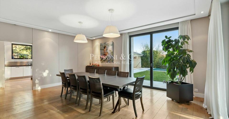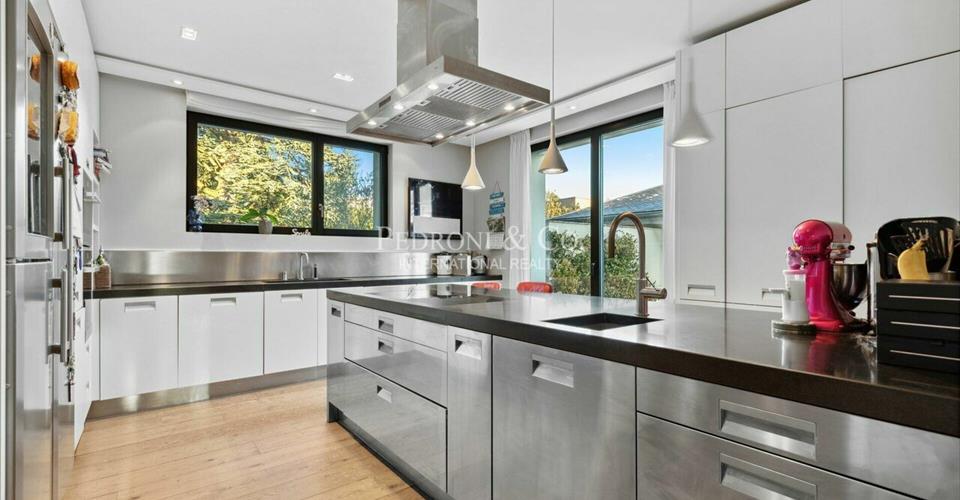 Nichée au coeur de la prestigieuse commune de Chêne-Bougeries, cette magnifique villa contemporaine s’impose par son élégance et son raffinement. Implantée sur une parcelle d’une superficie totale de plus de 2 000 m², elle se distingue par une superbe arborisation, offrant une large gamme d’espaces paysagers et une proximité immédiate avec le Centre-Ville. Réputée pour ses résidences de Maîtres et sa situation idéale, cette commune prise offre un équilibre parfait entre sérénité et accessibilité aux commodités. La propriété a une superficie de 780 m², une surface harmonieuse au niveau hors solaire, et les volumes sont sublimement sublimes pour une belle hauteur sous plafond. Composée de 11 pièces, elle propose des espaces de vie spacieux et lumineux, notamment grâce aux larges baies vitrées qui invitent la lumière naturelle à sublimer chaque recoin. La pièce de réception, véritable cœur de la maison, allie convivialité et élégance, tandis que les finitions de grande qualité et les nobles utilisations reflètent et apportent ainsi exceptionnellement aux moindres détails. Pensée pour répondre aux attentes des plus exigeants, la villa dispose d’un ensemble de prestations haut de gamme qui en font une demeure unique. Une cave à vin pour les amateurs de grands crus, un sauna avec hammam et douche pour des moments de détente, une pièce polyvalente qui peut s’amuser dans la salle de cinéma ou la salle de fitness, qui enrichit grandement le monde d’exception. Pour le confort des occupants et du personnel, un studio indépendant avec cuisine est également disponible et les deux chambres séparées sont disponibles. L’extérieur, le charme de l’opéra avec un jardin soigneux, peut vraiment avoir une atmosphère paisible dans l’accueil instantané des réceptions élégantes. La piscine est à débordement et le Pool House est complet et dispose d’un espace extérieur idyllique, vous invitant à profiter de beaux moments. Enfin, un coffret double assure praticité et sécurité, répondant aux besoins d’une vie moderne sans compromis. Cette propriété réunit tous les atouts d’une résidence prestigieuse où chaque détail a été pensé pour offrir un cadre de vie d’exception. Avec ces espaces spacieux, le choix du choix et les équipements luxueux, ils constituent une opportunité rare et un excellent choix pour les jeunes amateurs.