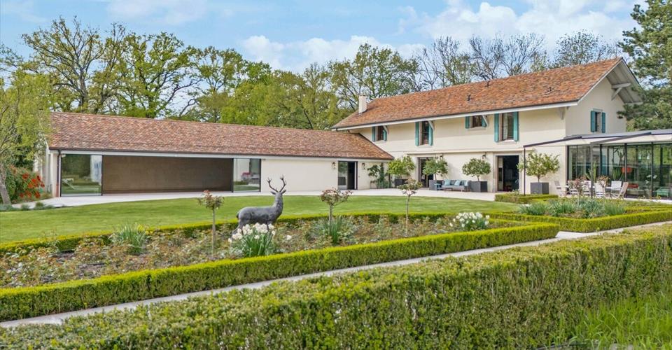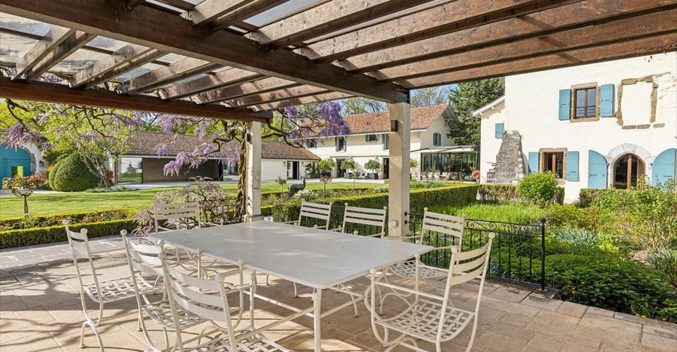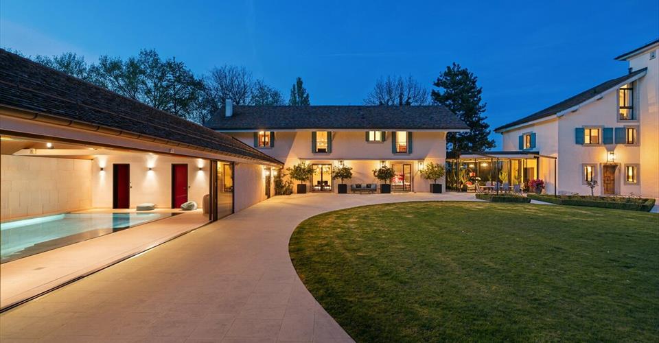 Situé au cœur de la paisible campagne genevoise, dans la charmante commune de Choulex, ce magnifique domaine, baigné de lumière et niché sur une parcelle d’environ 5’000 m2, vous offrira un cadre de vie exceptionnel. Composé de plusieurs bâtiments, dont une maison forte datant du XVIIIe siècle, l’ensemble a été entièrement rénové 2010 avec des matériaux de très haute qualité. La propriété marie habilement modernité et authenticité. Elle présente de généreux espaces de réception dont une splendide salle à manger, de plusieurs bureaux, reliés par une magnifique verrière. Le tout, desservi par un ascenseur. L’espace nuit se compose d’une master bedroom, avec ses deux dressings (Monsieur et Madame) et ses deux salles de bains complète (Monsieur et Madame), qui occupe un étage entier; de 6 autres chambres à coucher avec salle de bains. Une maison de gardien, offrant deux chambres supplémentaires, complète cet ensemble. Vous serez enchantés par l’ancienne écurie transformée en une piscine intérieure, ainsi que par le parc magnifiquement arboré d’une superficie d’environ 4’400 m2, préservant la tranquillité et l’intimité de la propriété. Un verger attenant de 1’000 m2, abritant des pommiers, poiriers et autres arbres fruitiers, agrémente ce lieu d’exception. Un garage double et 6 places de parking extérieures viennent parfaire cette somptueuse propriété.
