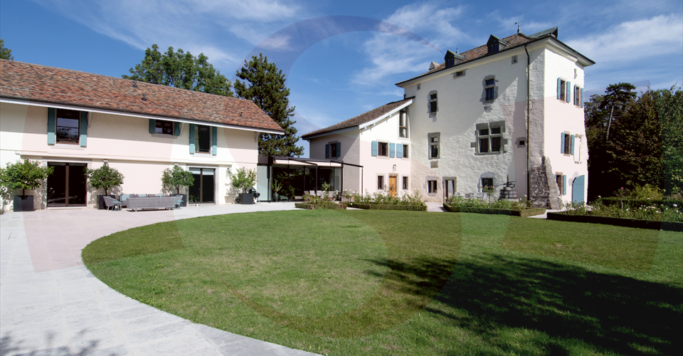 Niché dans un écrin de verdure dans la proche campagne genevoise, à l’abri des regards, ce domaine privé s’étend sur un terrain d’environ 5’000 m2 entièrement clos offrant une parfaite intimité. L’ensemble architectural comprend notamment une demeure historique du XVIIIème siècle qui a bénéficié d’une restauration complète en 2010, réalisée avec des matériaux très haut de gamme. Ce havre de paix mélange adroitement le charme d’antan et la sophistication contemporaine. Il dispose de multiples espaces de réception, reliés par une magnifique verrière et desservis par un ascenseur. On compte sept chambres à coucher dont une immense suite parentale qui occupe tout le premier étage de la maison principale, incluant une chambre, un salon, deux dressings et deux salles de bains dédiées. Un logement pour le gardien occupe un des bâtiments, ajoutant deux chambres supplémentaires à l’ensemble (soit 9 chambres au total). Les anciennes écuries, métamorphosées en une sublime piscine intérieure, ainsi qu’un très beau jardin paysagé contribuent à l’ambiance reposante du domaine. Un garage double, un grand parking extérieur ainsi qu’un verger adjacent de 1’000 m2, viennent compléter cette propriété unique.